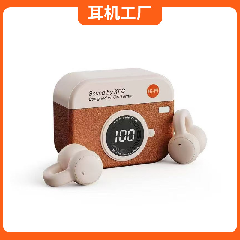 Главная страница > Q87 ретро-камера, зажим для ушей, Bluetooth-гарнитура, ретро-кожаная текстура, длительный срок ношения без боли, гарнитура с цифровым дисплеем высокой четкости с костной проводимостью