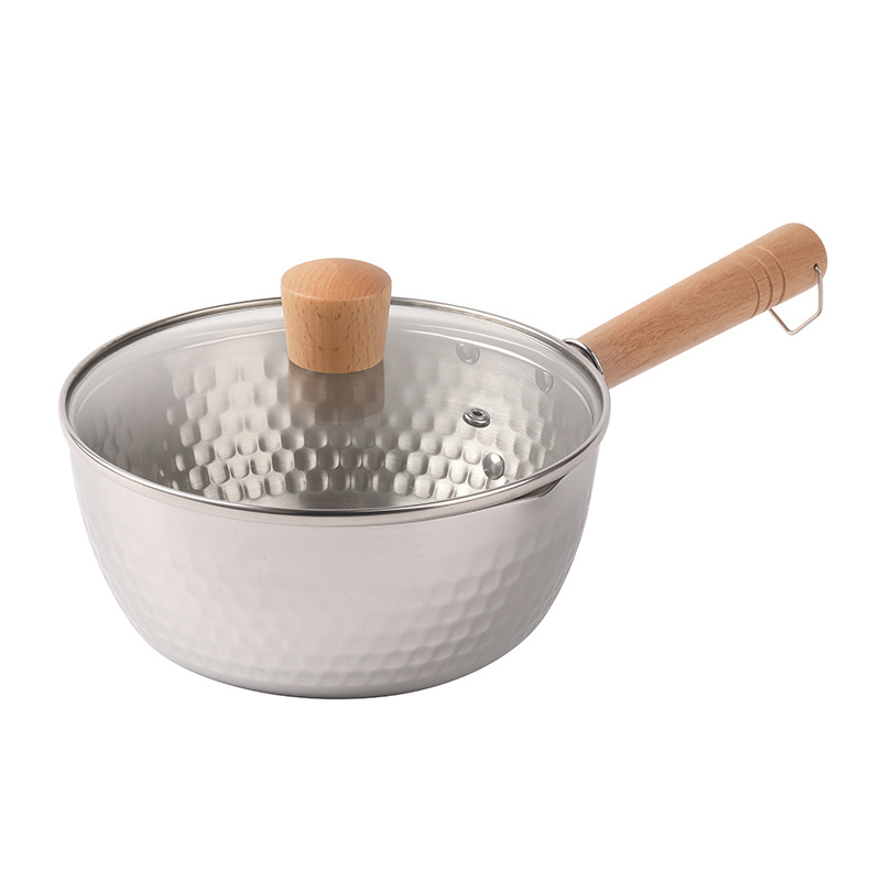 Фабрика оптом японская пищевая нержавеющая сталь Снежная сковорода молочная сковорода утолщенная Бытовая детская пищевая добавка кастрюля молоток узор суп горшок