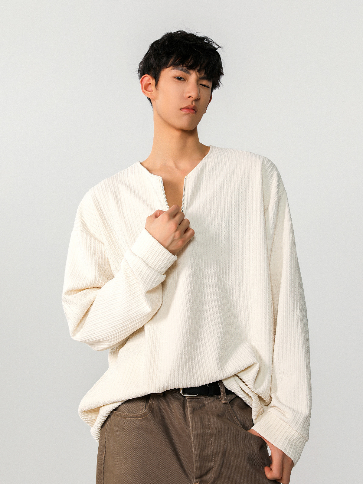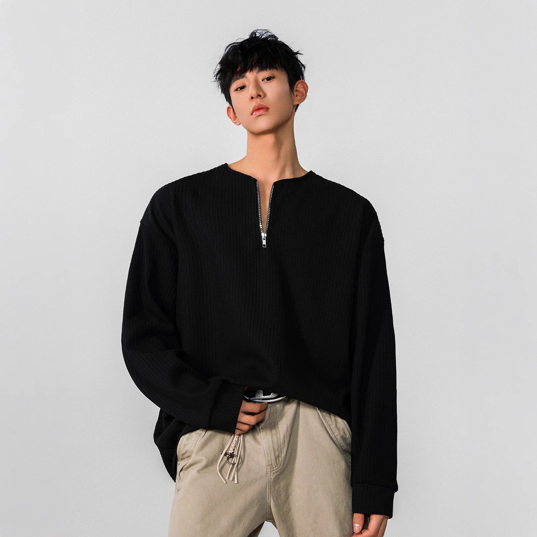 Чувство текстуры Полузастежки-молнии с длинными рукавами футболка мужская новая весна 2025 года