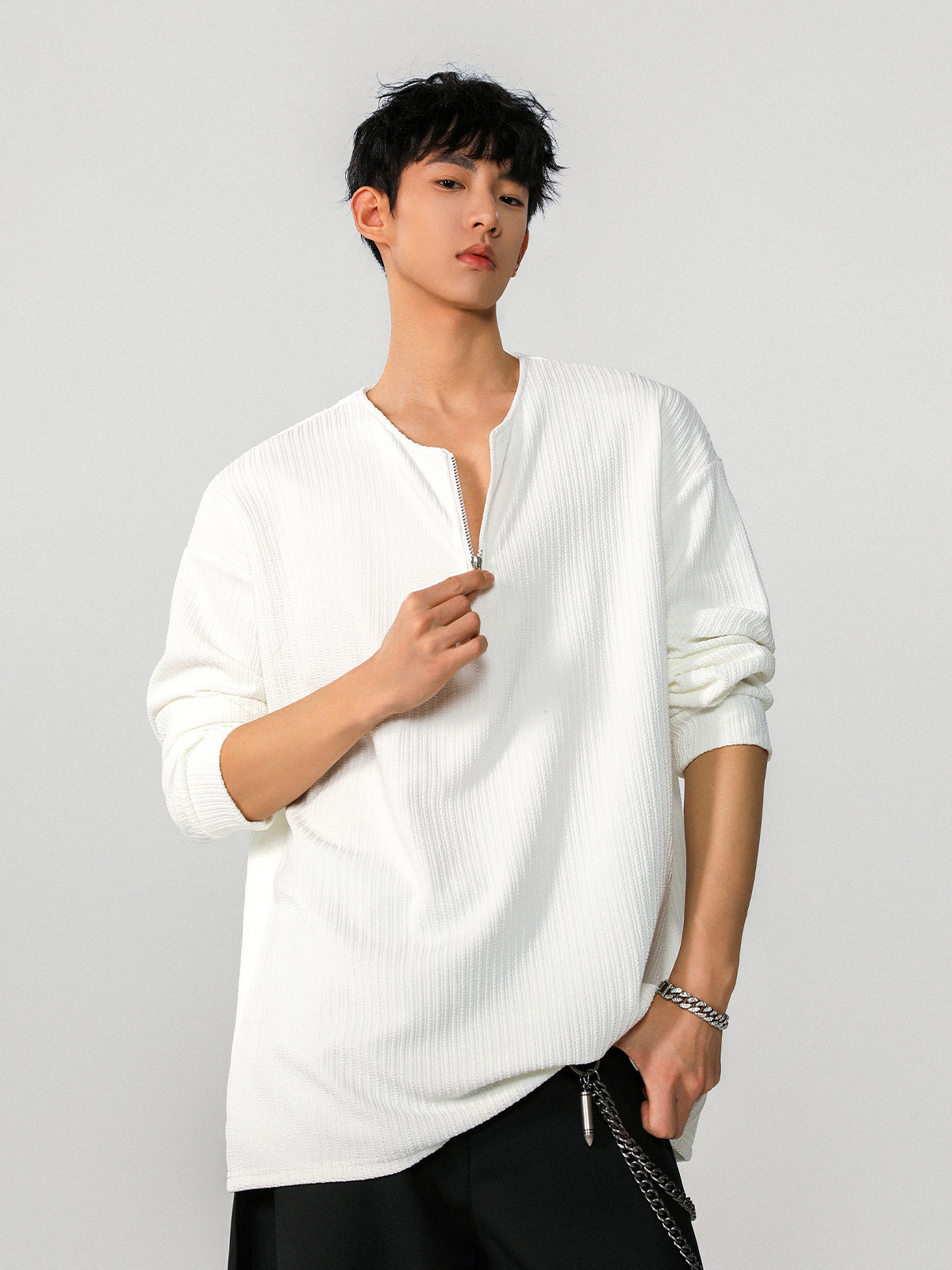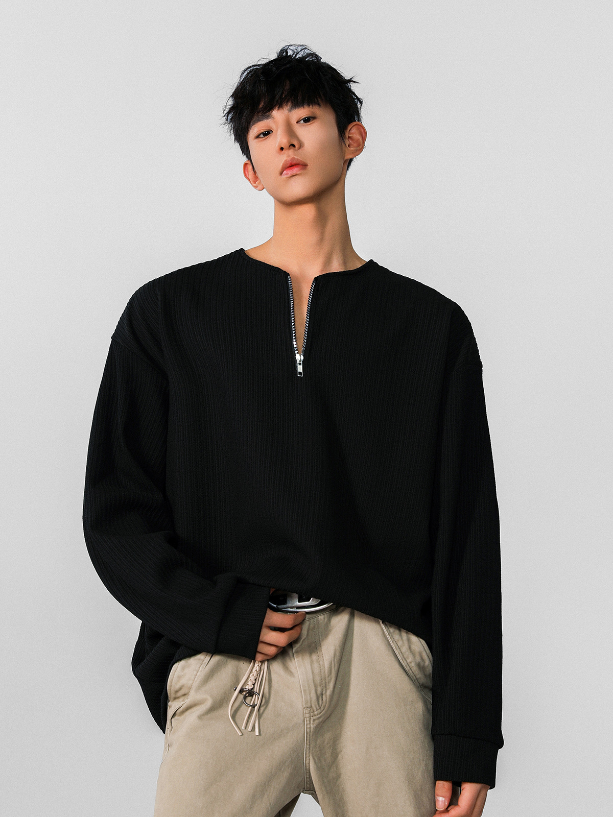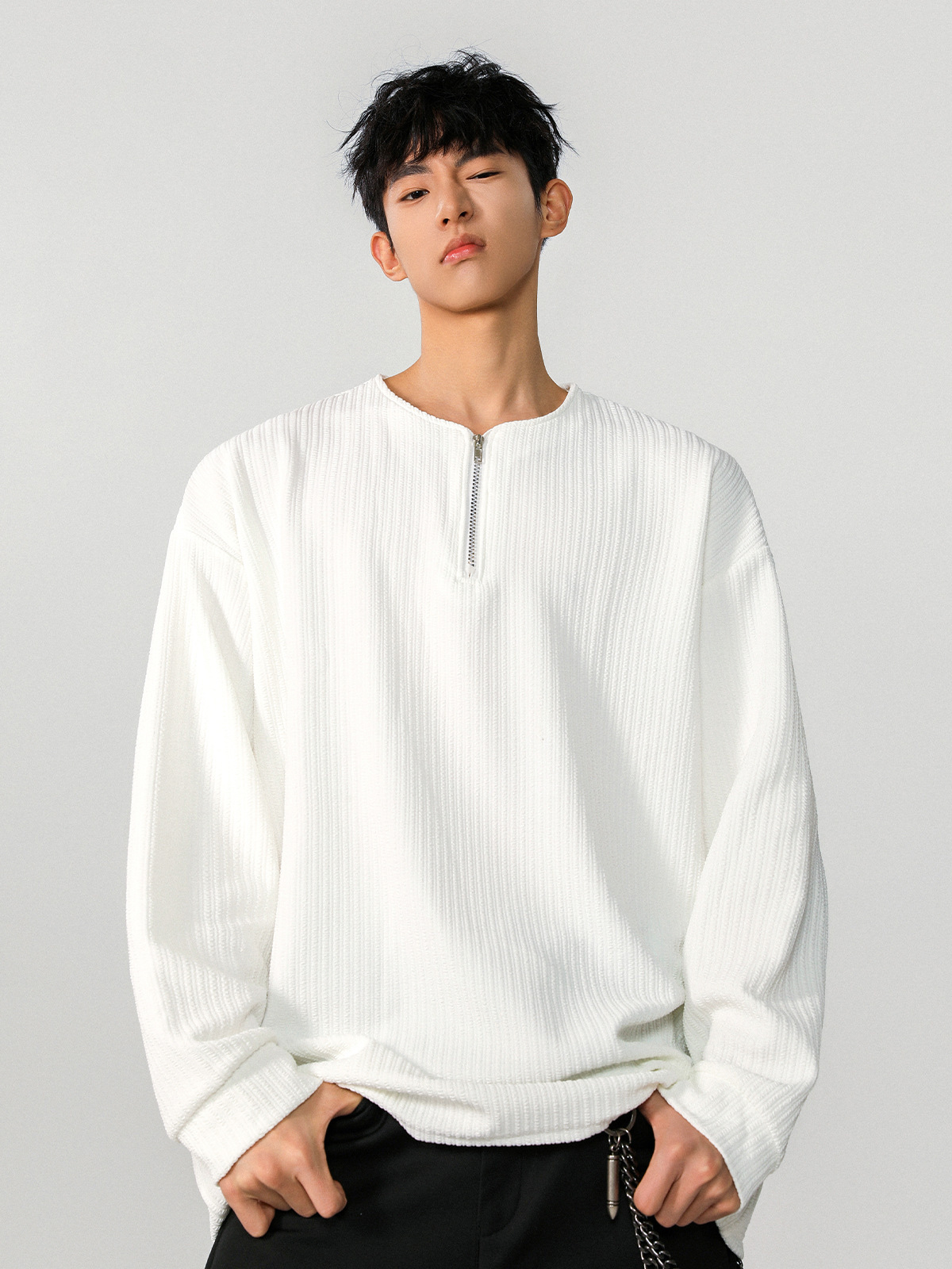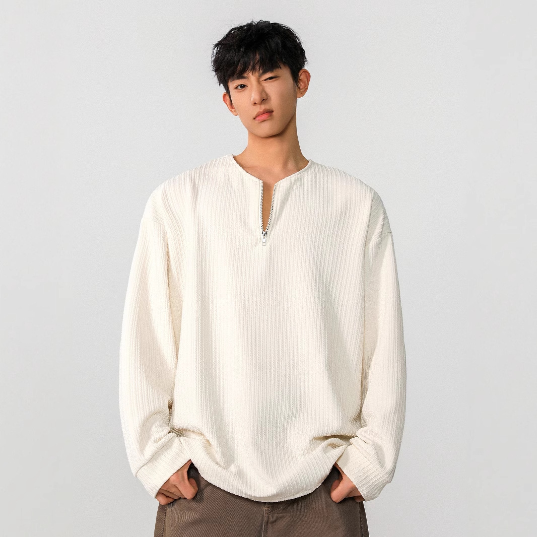 Главная страница > Чувство текстуры Полузастежки-молнии с длинными рукавами футболка мужская новая весна 2025 года