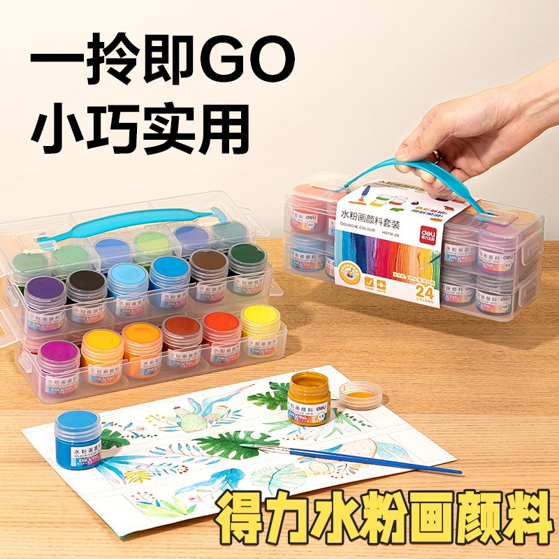 Deli HS114 набор гуашевых красок, инструмент для рисования для начинающих, детей, 24 цвета, студенческая ручка для рисования, моющаяся