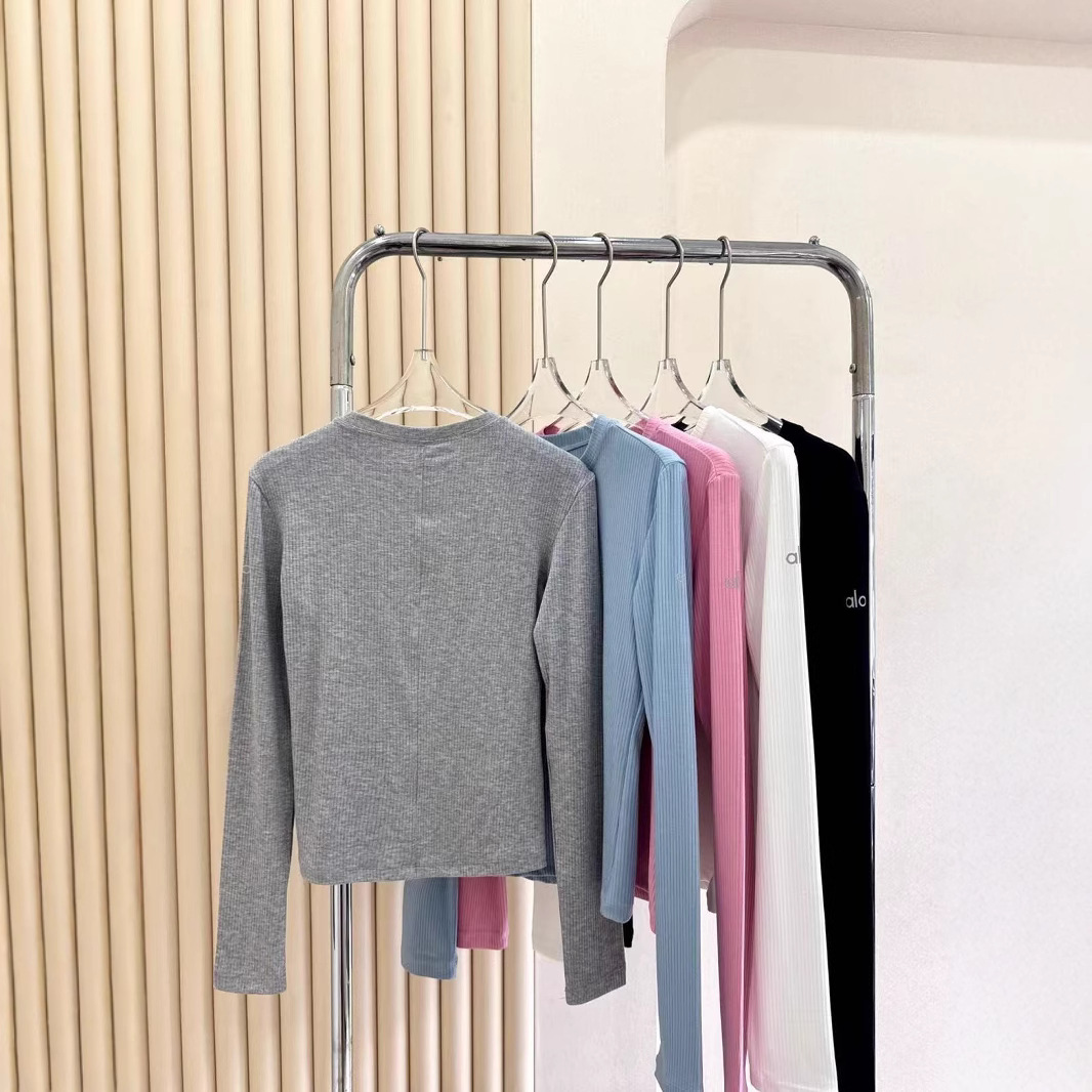 2025Al женская пятицветная нижняя рубашка, новая летняя суперэластичная футболка в рубчик с длинными рукавами, рубашка с круглым вырезом для йоги, утягивающий вид