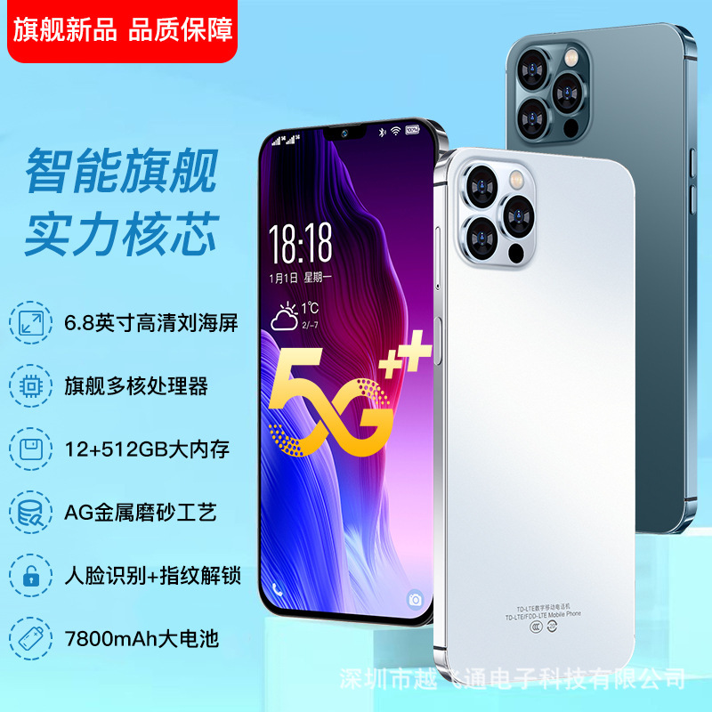 - 【i13pro】 6.8inch Экран челки, десять ядер, большая память 16 + 512 ГБ, поставляется с блоком питания.