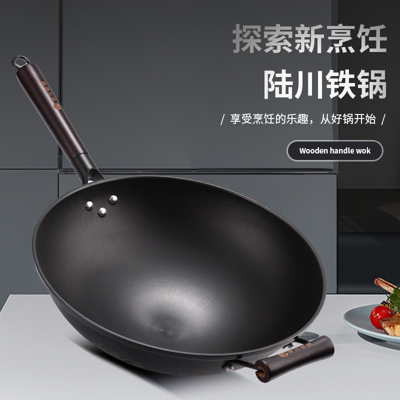 Главная страница > Традиционная железная сковорода вок без покрытия для домашнего использования, с круглым дном, подходит для газовых и индукционных плит.