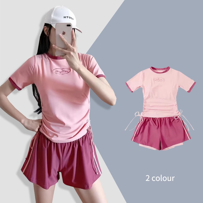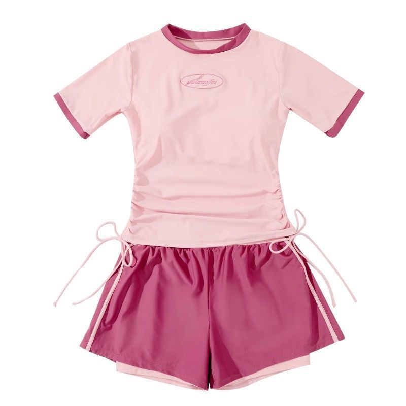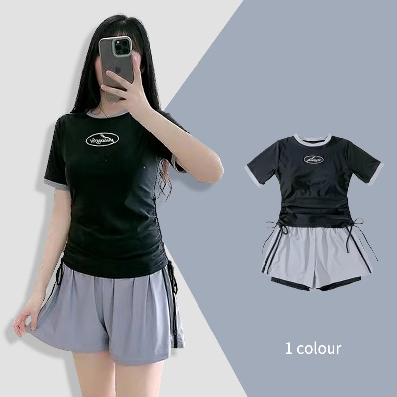 Новый стиль 2025: женский купальник больших размеров для пышных форм, консервативный раздельный купальник с короткими рукавами, скрывающий живот и придающий стройность.