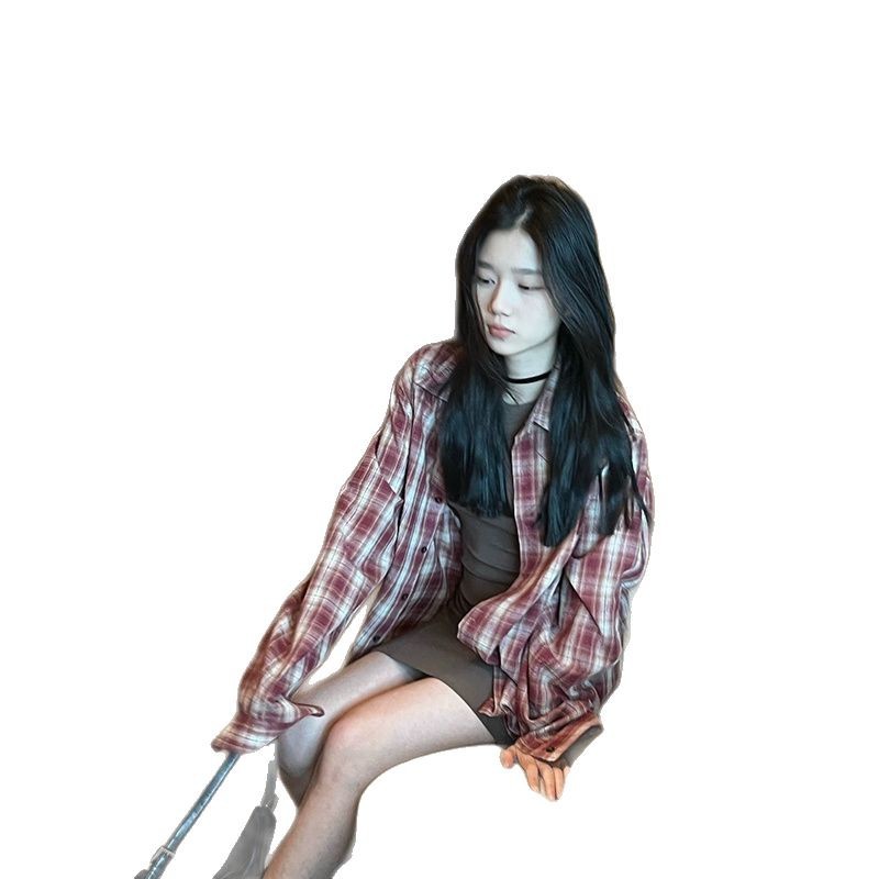 Главная страница > Весна и Осень 2025 новая клетчатая рубашка женская корейская версия носить рыхлый красный кардиган с длинными рукавами топ солнцезащитного пальто прилив