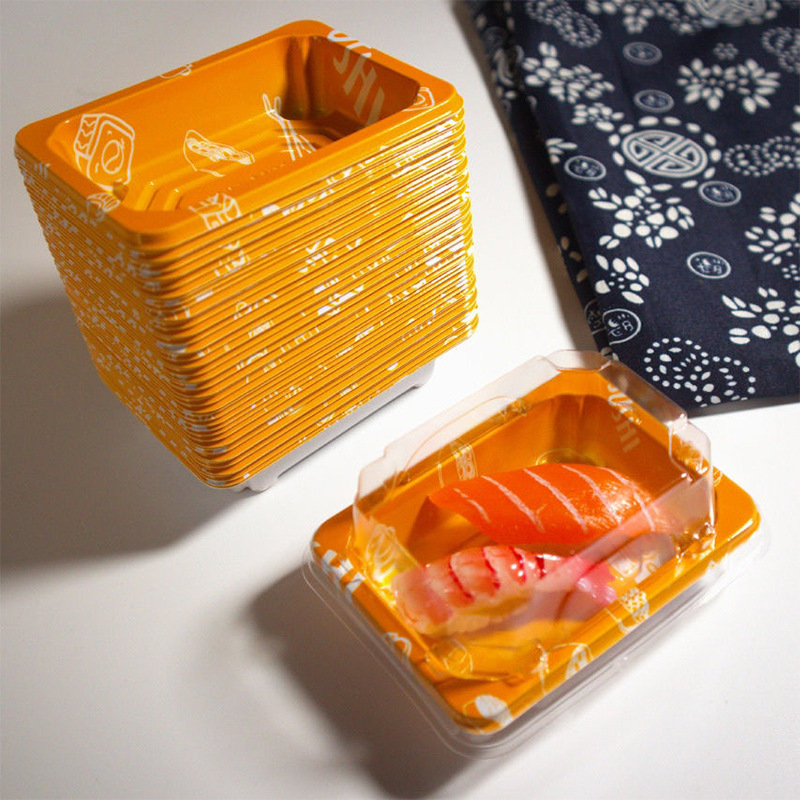 Главная страница > Заслуженная желтая коробка для суши прямоугольная коробка лосося сашими на вынос пластиковая коробка в японском стиле