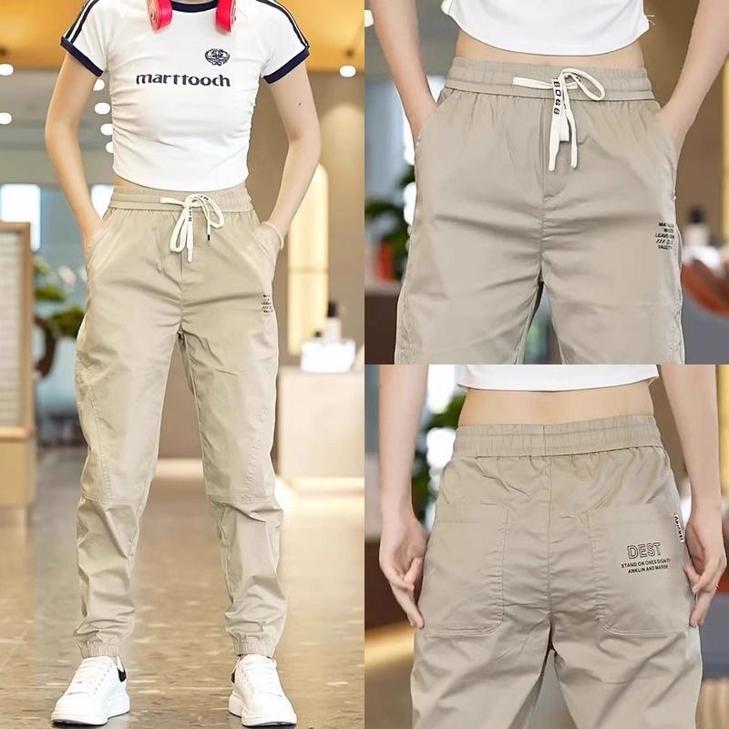 Главная страница > Легкие брюки из ледяного шелка женские тонкие летние носить повседневные беговые брюки дикие тонкие эластичные спортивные брюки