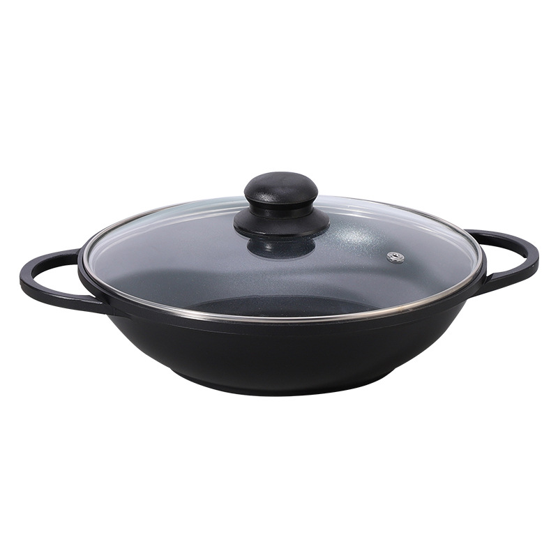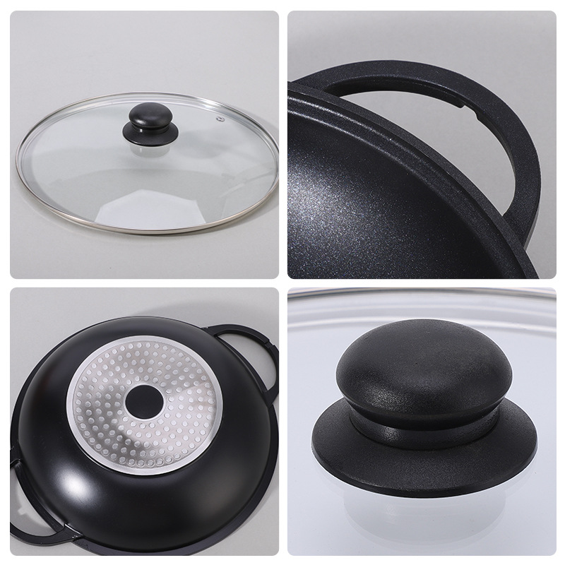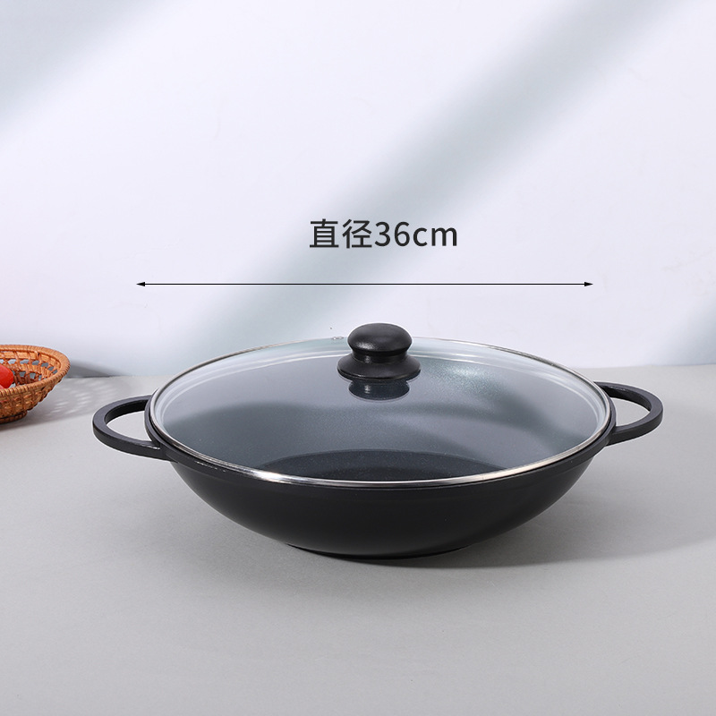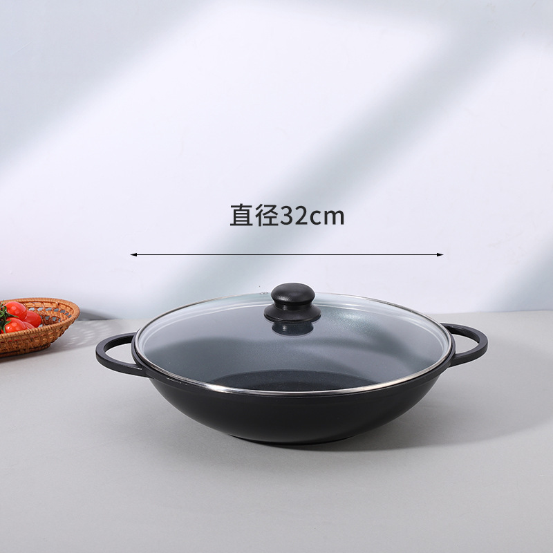 Главная страница > Алюминиевая сковорода-вок с двойным дном и двумя ручками, подходит для газовых и индукционных плит, антипригарная сковорода, кастрюля для сухого приготовления, профессиональная посуда для ресторанов, антипригарная сковорода, сковорода-гриль.