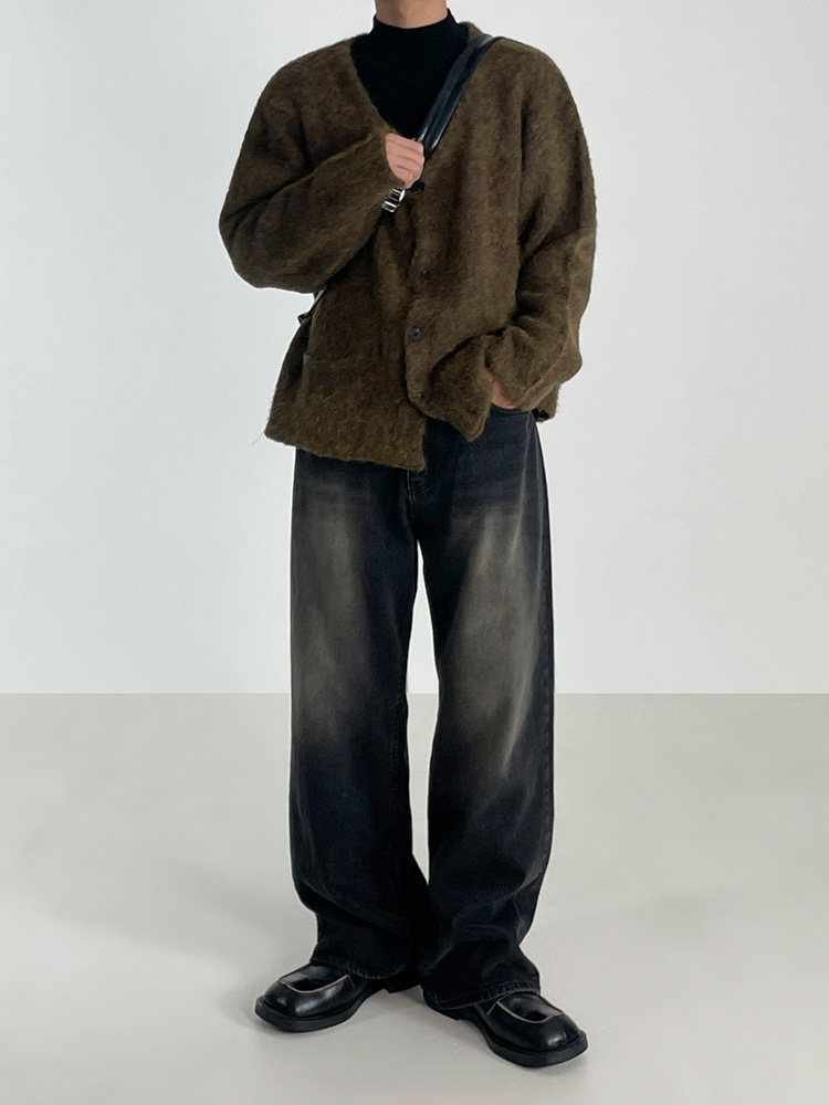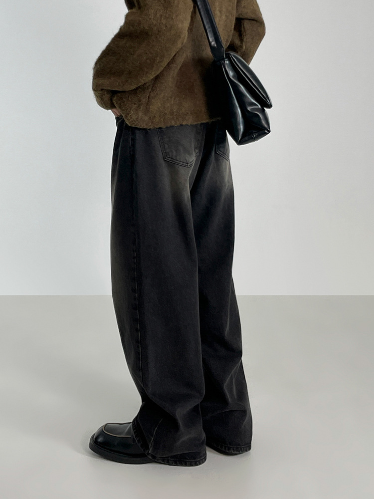 Главная страница > Мужские моющиеся вертикальные утолщенные джинсы MYQ в стиле ретро, осень и зима, новая Корейская версия свободных прямых брюк