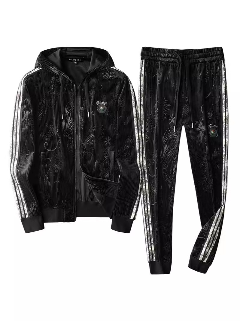 Главная страница > Европейский вокзал 2024 осень и зима новая золотая бархатная вышивка мужской спортивный набор больших размеров с капюшоном повседневный набор из двух частей