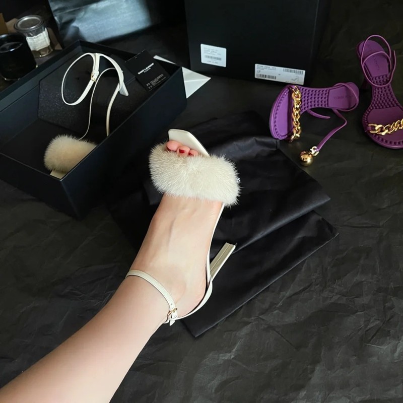 Главная страница > 2025 Новые весенние женские босоножки на высоком каблуке из меха норки с одной ремешком, универсальные туфли на шпильке с квадратным носком, европейский и американский стиль.