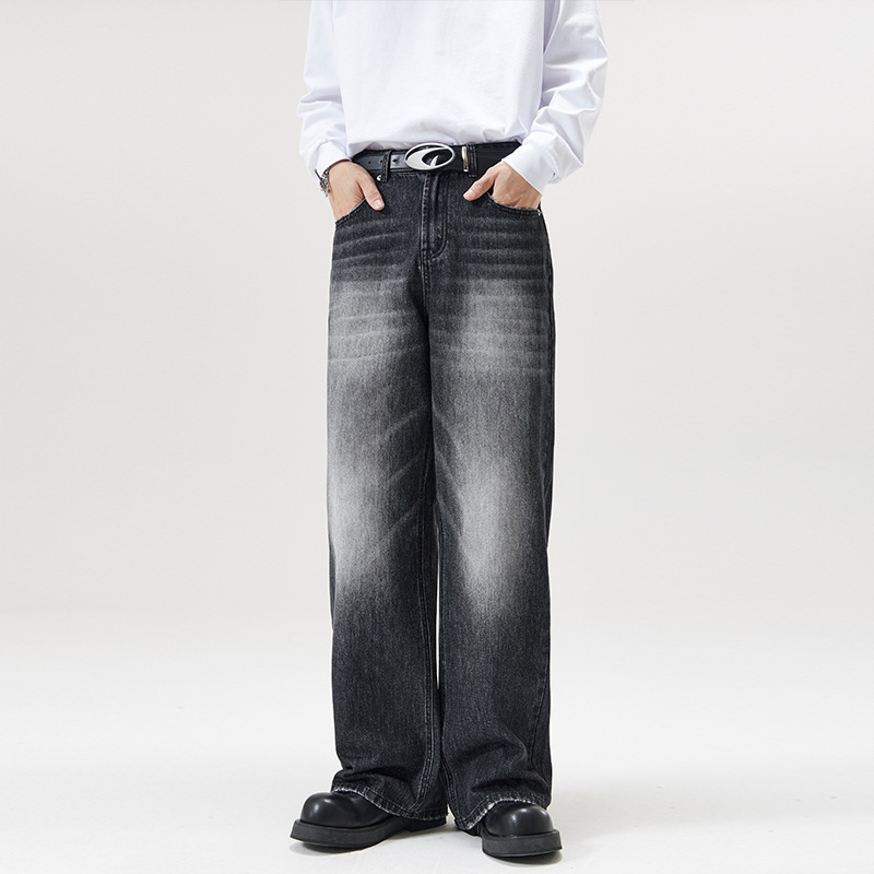 Главная страница > LKTM Men # Four Seasons Run Объем корейских прямых джинсов типа А, мужской прилив, свободная широкая нога, длинные брюки