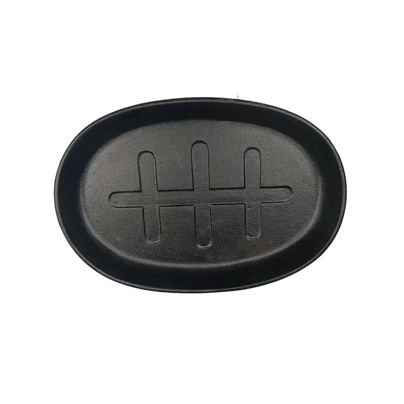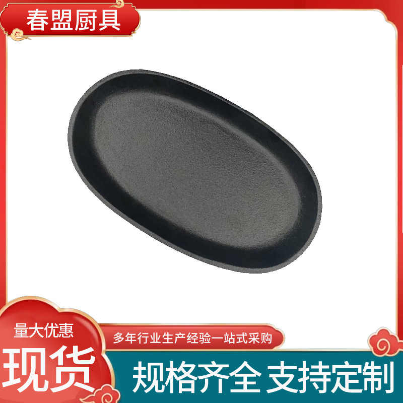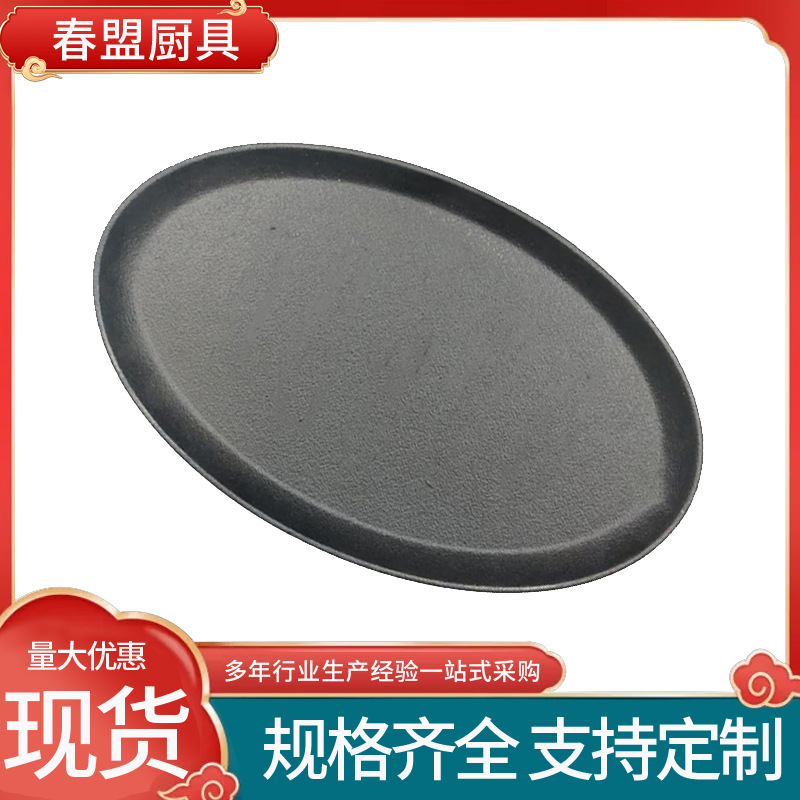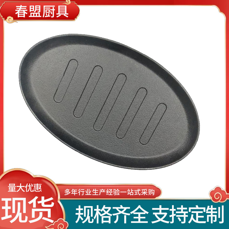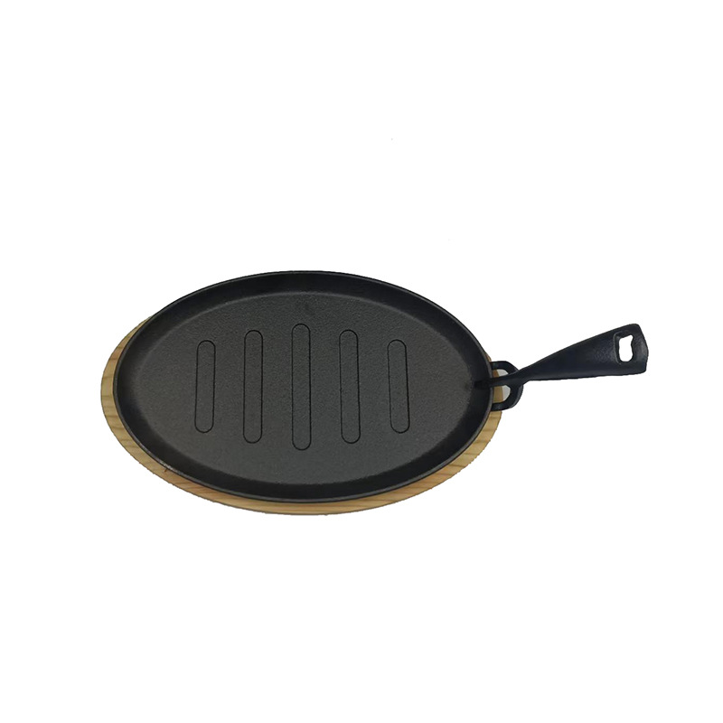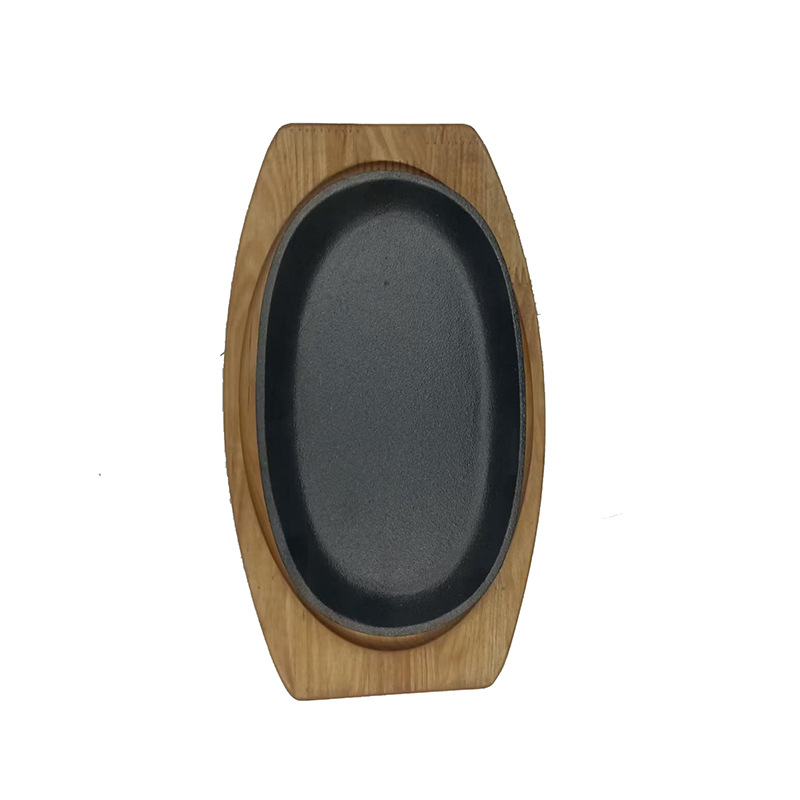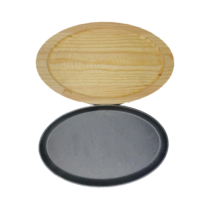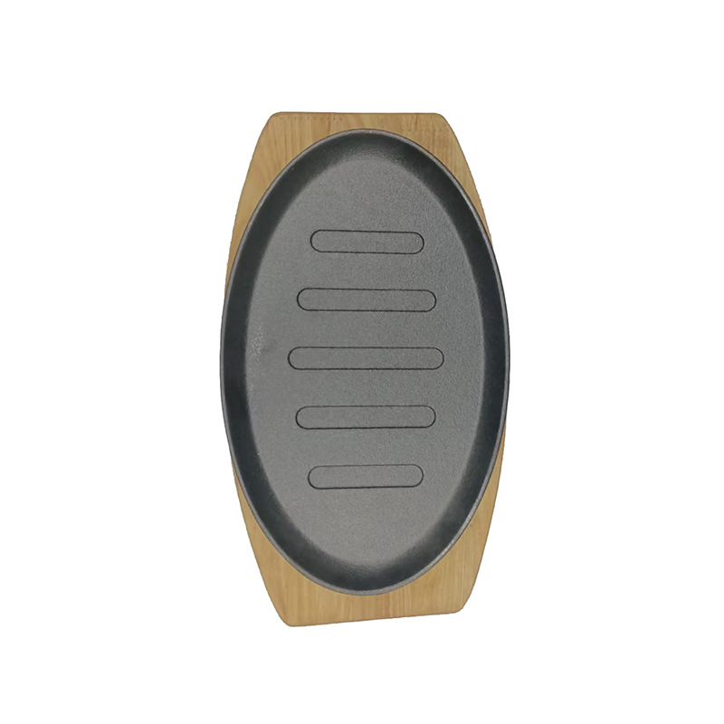 Главная страница > Чугунная овальная сковорода-гриль для стейков в западном стиле с деревянной подставкой, универсальная чугунная сковорода для стейков.