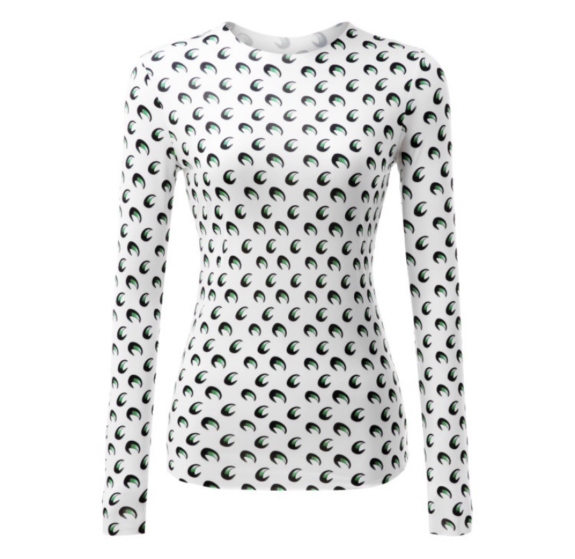 В наличии: Новая женская базовая футболка с принтом «Луна», осень 2025, с длинным рукавом, многослойная, с защитой от солнца, из ледяного шелка, для ношения под одеждой