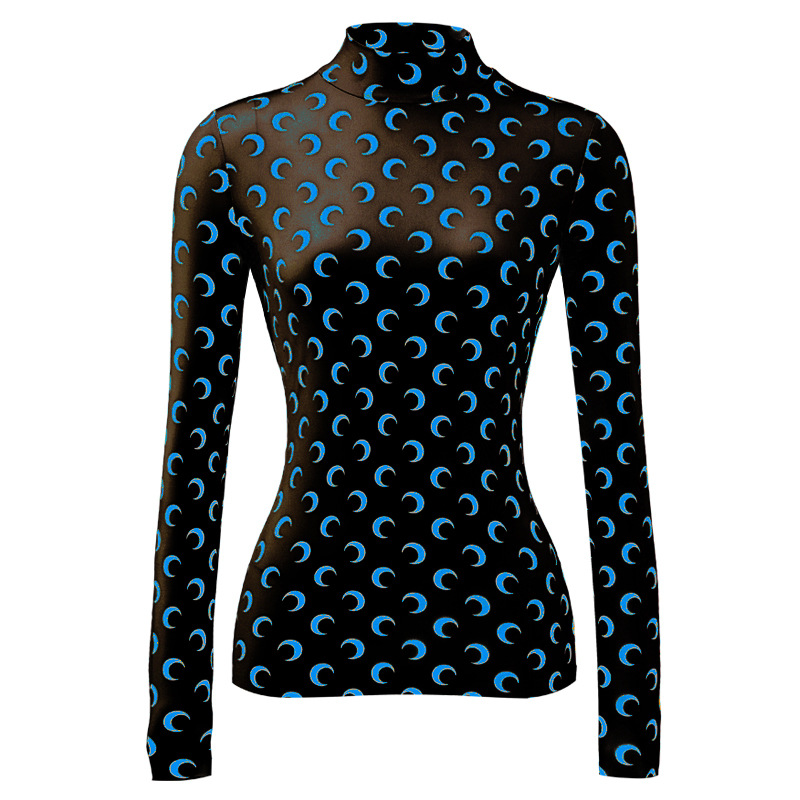 (Низкий круглый вырез) Голубая Луна на черном фоне