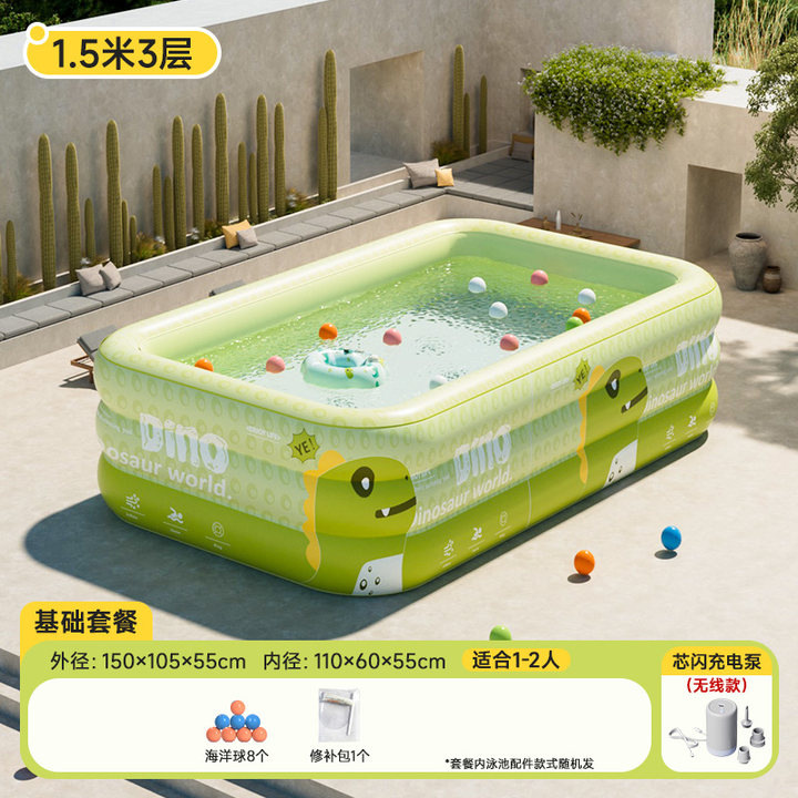 1.8m -слойный зеленый надувной бассейн с драконом + электрический насос в мешке + базовый пакет