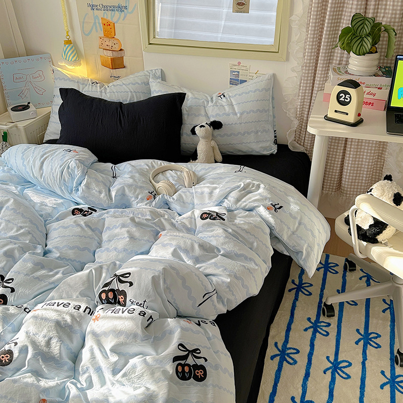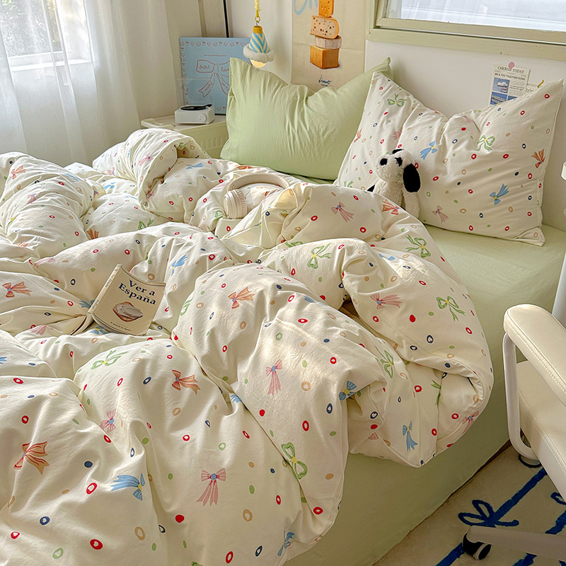 Категория А, ребенок, голый спящий хлопковый набор из четырех частей: свежий хлопок для мытья воды милый мультфильм крем ветер простыни одеяло