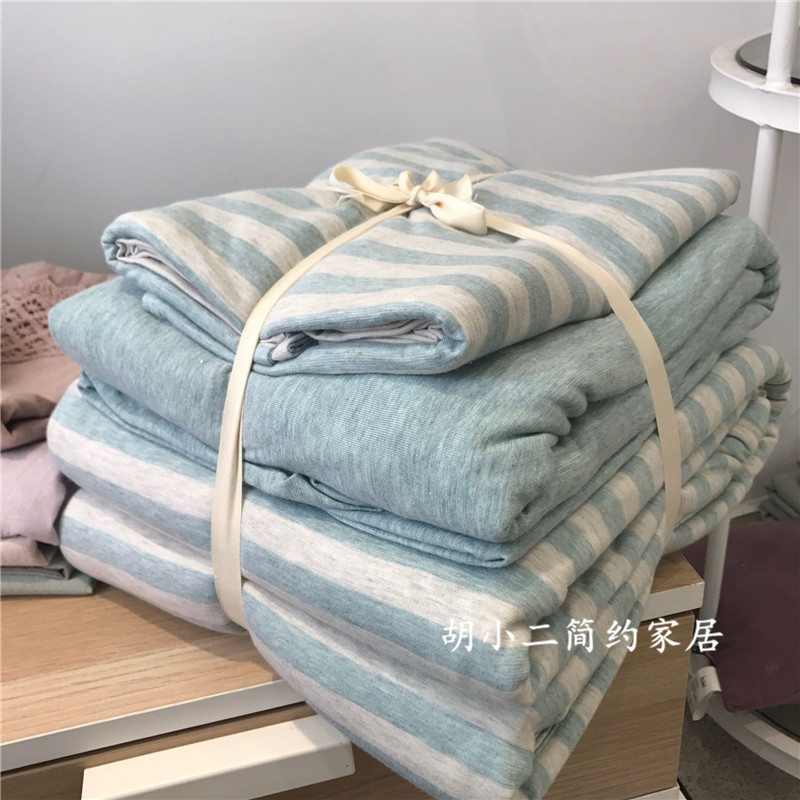 [Счетчик 800] Мягкая голая спящая хлопчатобумажная полоска трикотажная хлопчатобумажная вата три или четыре комплекта хлопчатобумажных простыней