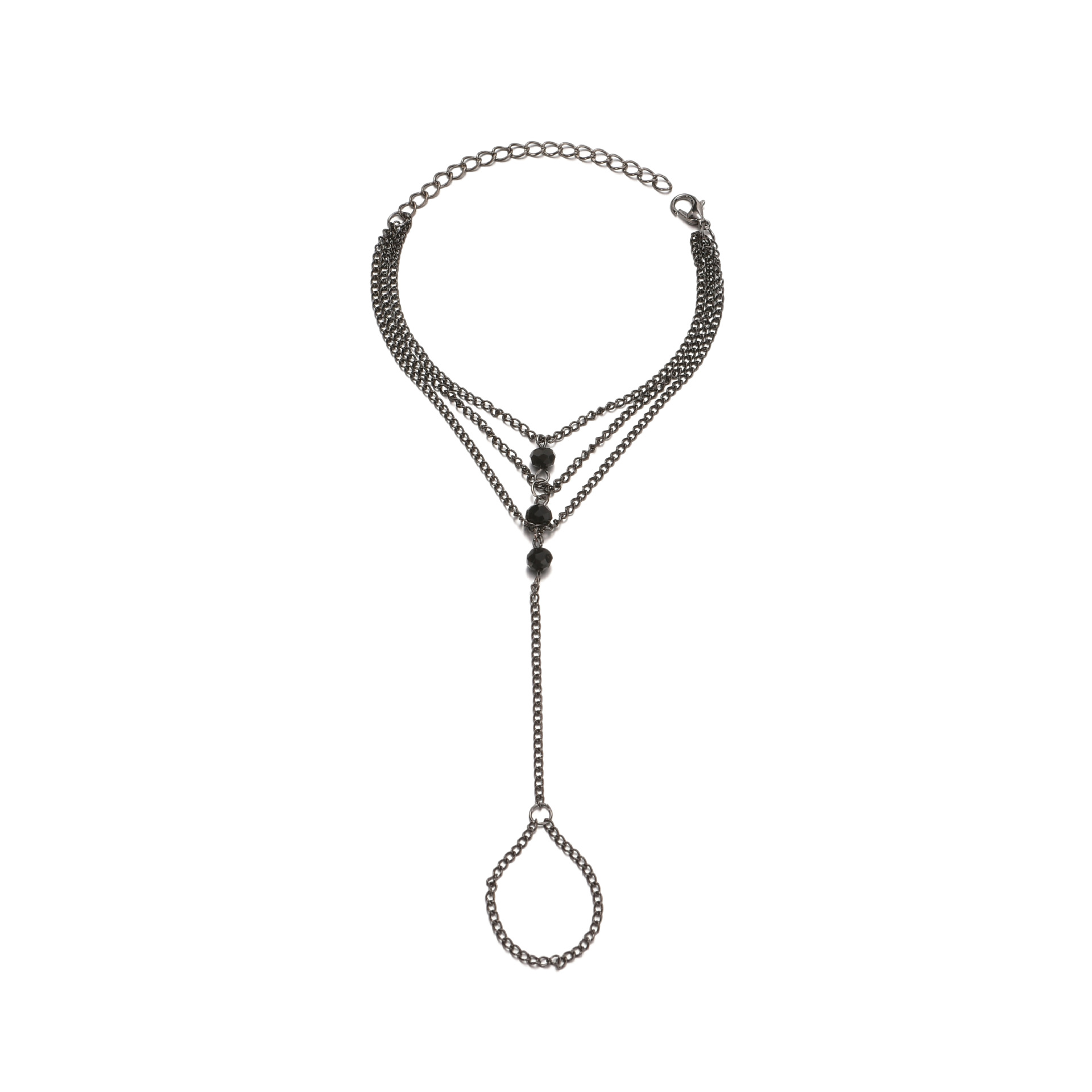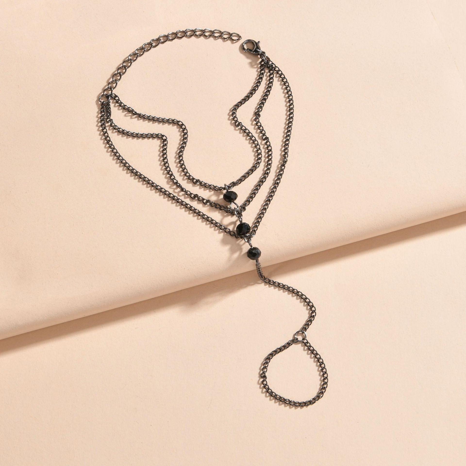 Персонализированный Темный стиль имитация драгоценных камней из бисера из черного металла многослойный браслет для ношения пальцев унисекс