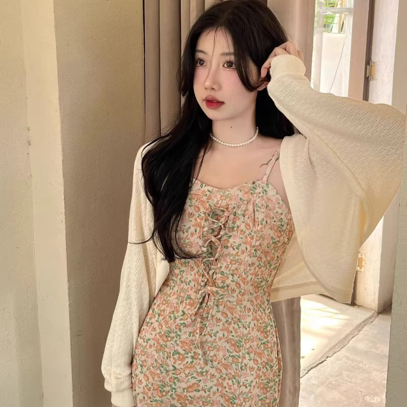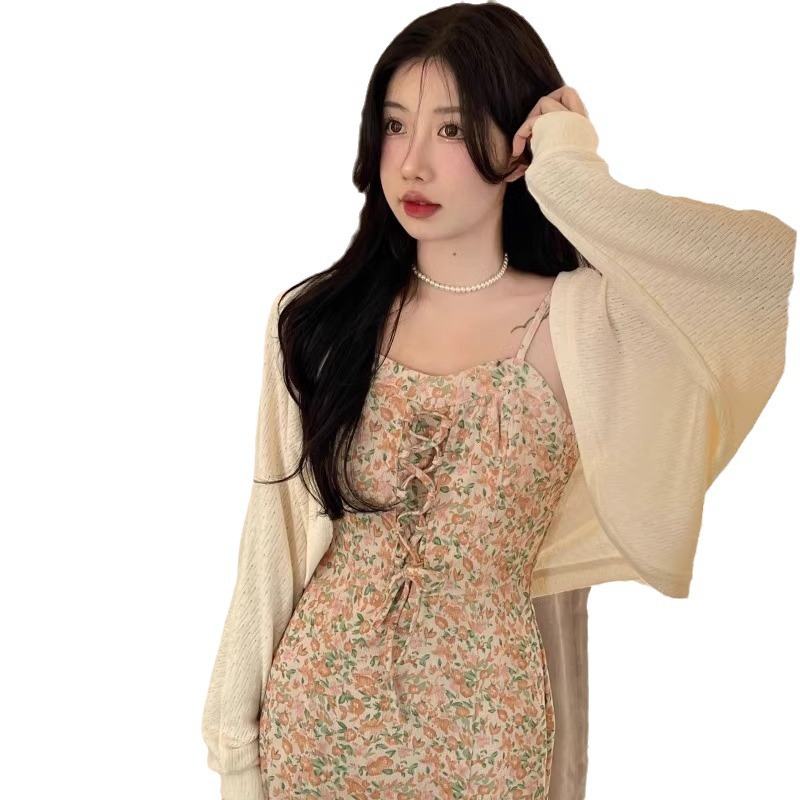 Главная страница > Вязаный кардиган с французским молочным абрикосом, Женская весенне-осенняя юбка на подтяжках, верхняя шаль с рукавами «летучая мышь», рубашка для защиты от солнца из ледяного шелка, лето