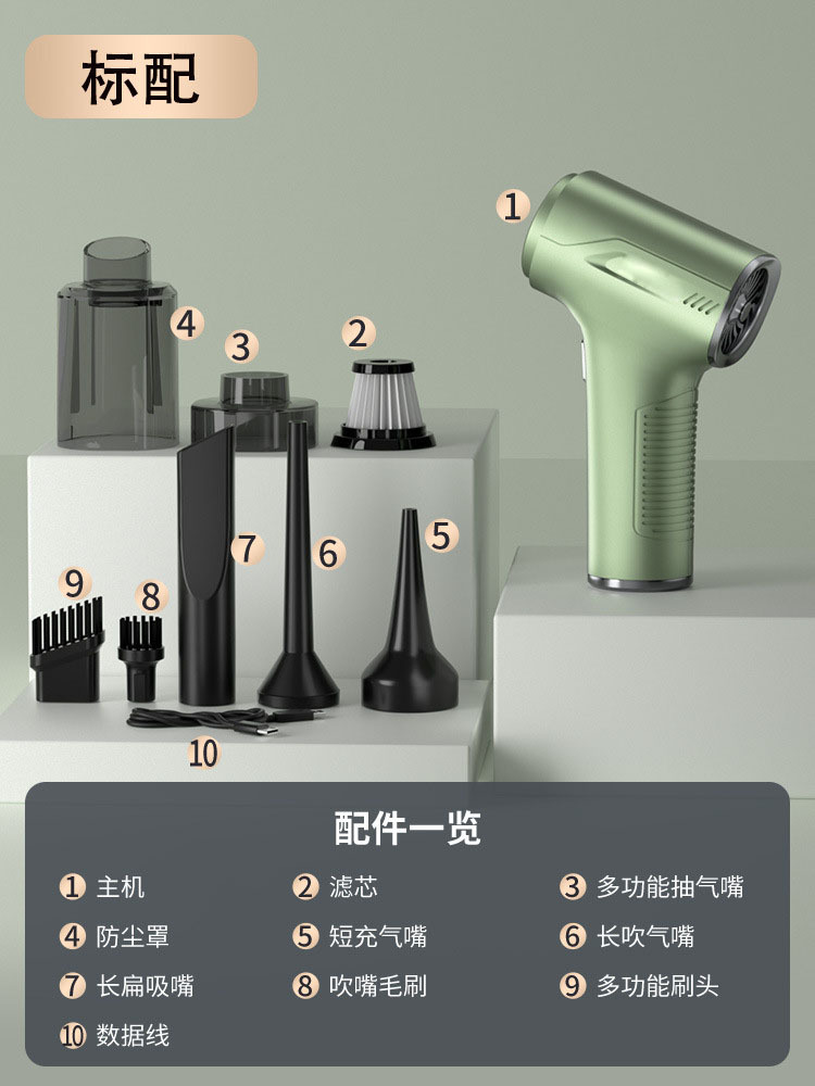 Профессиональная модель, новый бамбуковый зеленый [надзрачный] всасывание, выдувание и зарядка 4-в-1 + моющийся фильтрующий элемент * 3 + щетка для пола + сумка для хранения