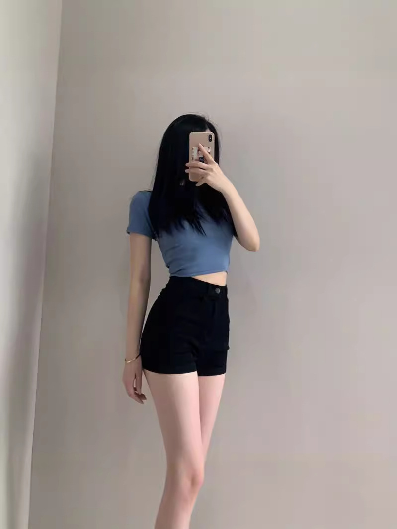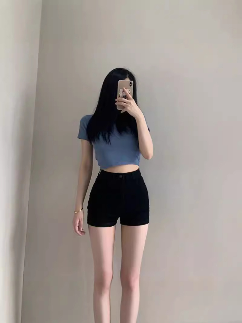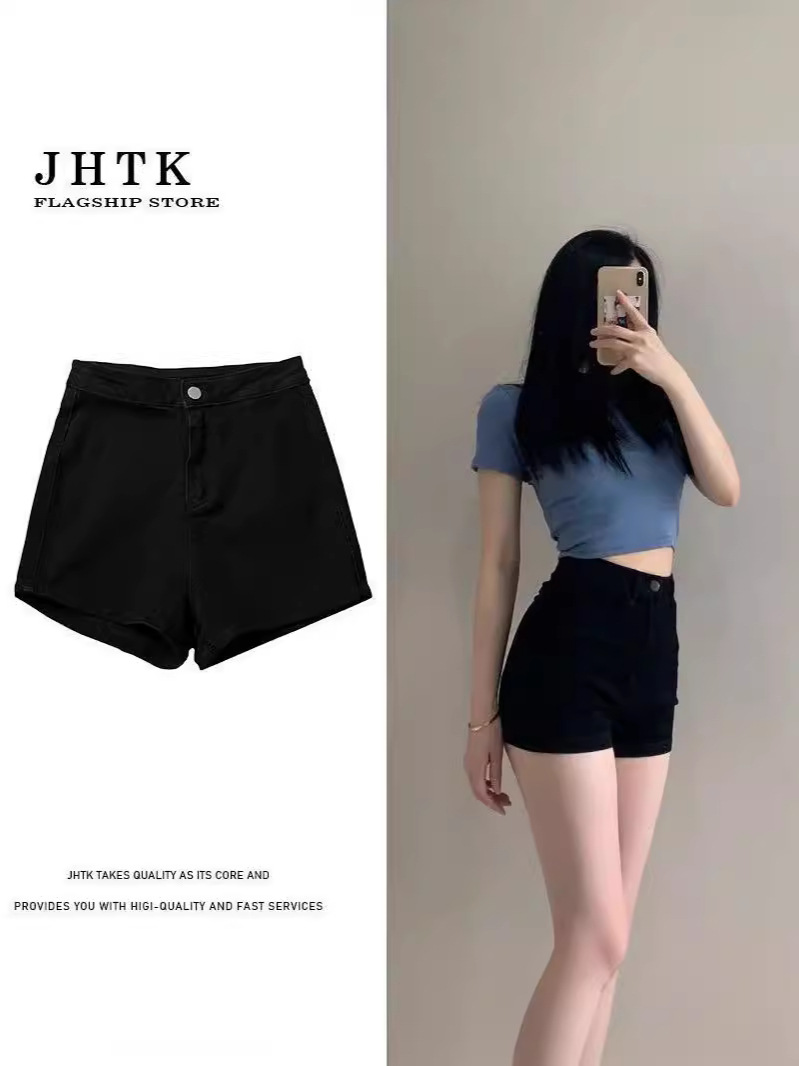 Главная страница > Черные джинсовые шорты с высокой талией женские горячие шорты женские шорты летом носить эластичные высокие талии узкие шорты с тонкими бедрами