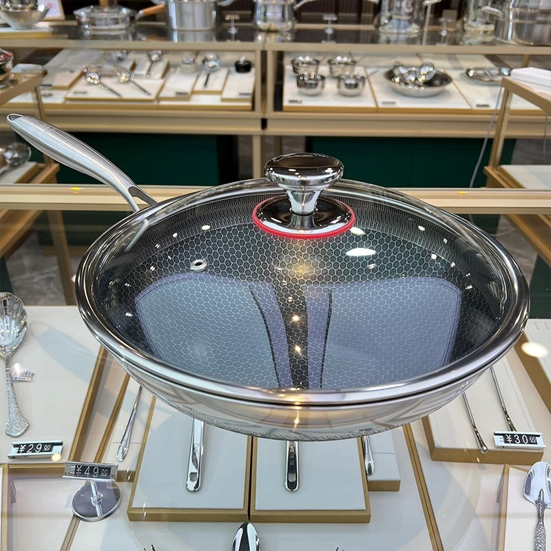 Главная страница > Трехслойная стальная сковорода-вок из нержавеющей стали 316 сотовой структуры, легкий дым, антипригарное покрытие, для домашней индукционной и газовой плиты