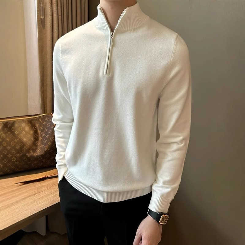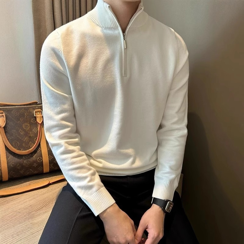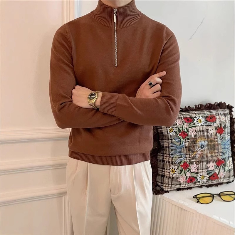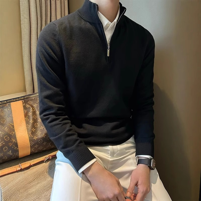 Главная страница > Оптовая продажа мужских свитеров с длинным рукавом, воротником-стойкой на молнии, универсальный трикотаж для осени и зимы.