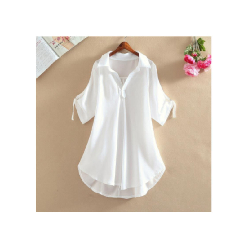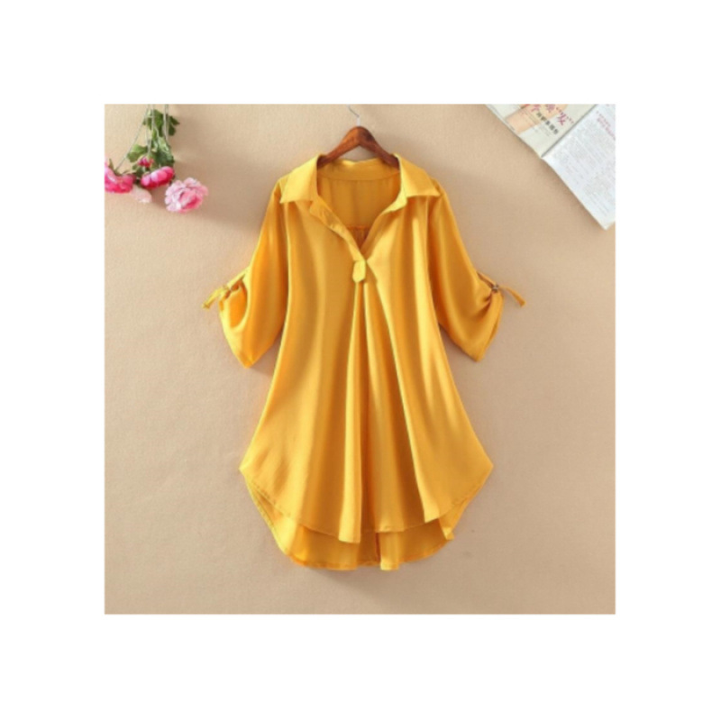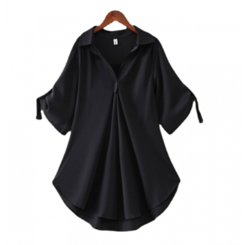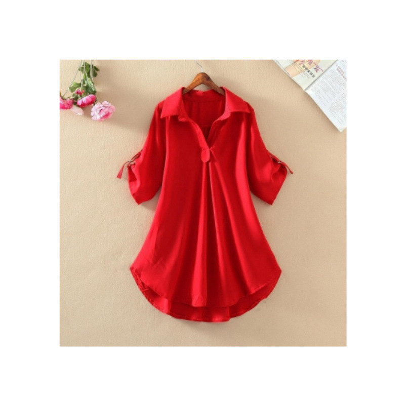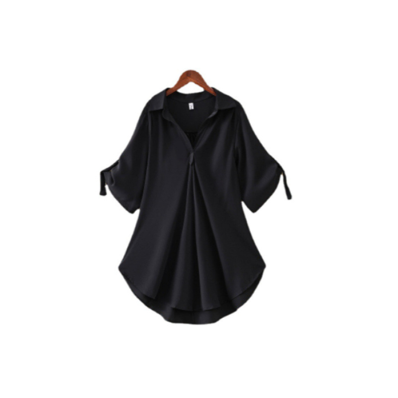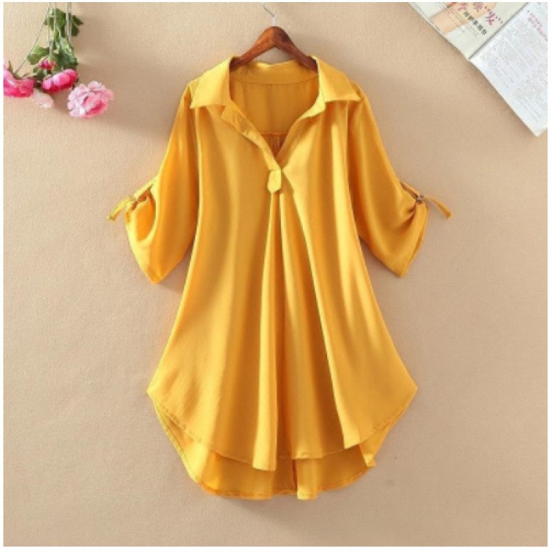 Главная страница > Женская рубашка с короткими рукавами, лето 2025, новинка, большой размер, свободная талия, утягивающая футболка с воротником-поло, футболка средней длины, топ