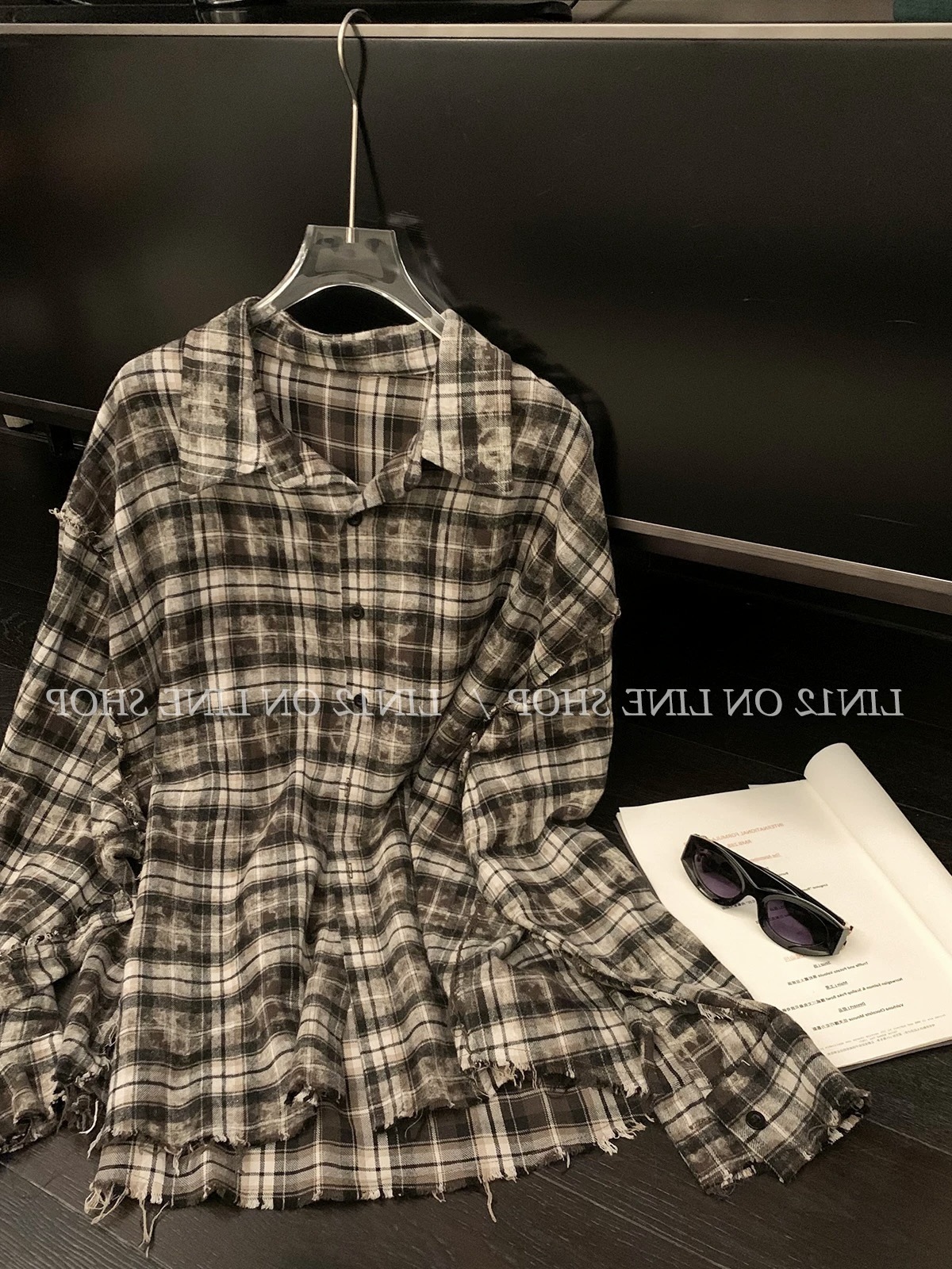 Главная страница > Универсальная свободная рубашка в клетку с длинными рукавами, блузка в клетку, женская одежда с бахромой для ранней осени G922