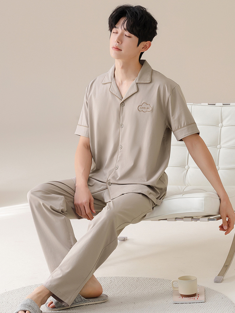Главная страница > Пижамная пара весна и лето хлопчатобумажные брюки с короткими рукавами мужские кардиган тонкий летний леди прохладный набор домашней одежды