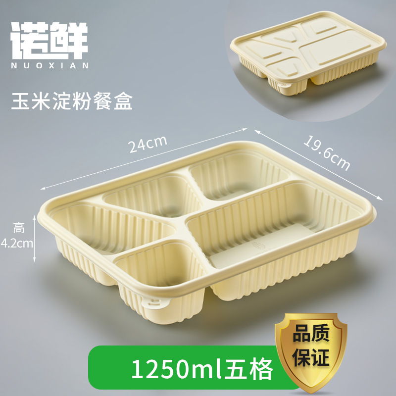 1250ml пять ячеек кукурузный крахмал ланч-бокс с крышкой 1 комплект