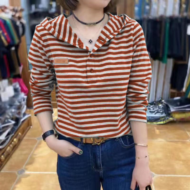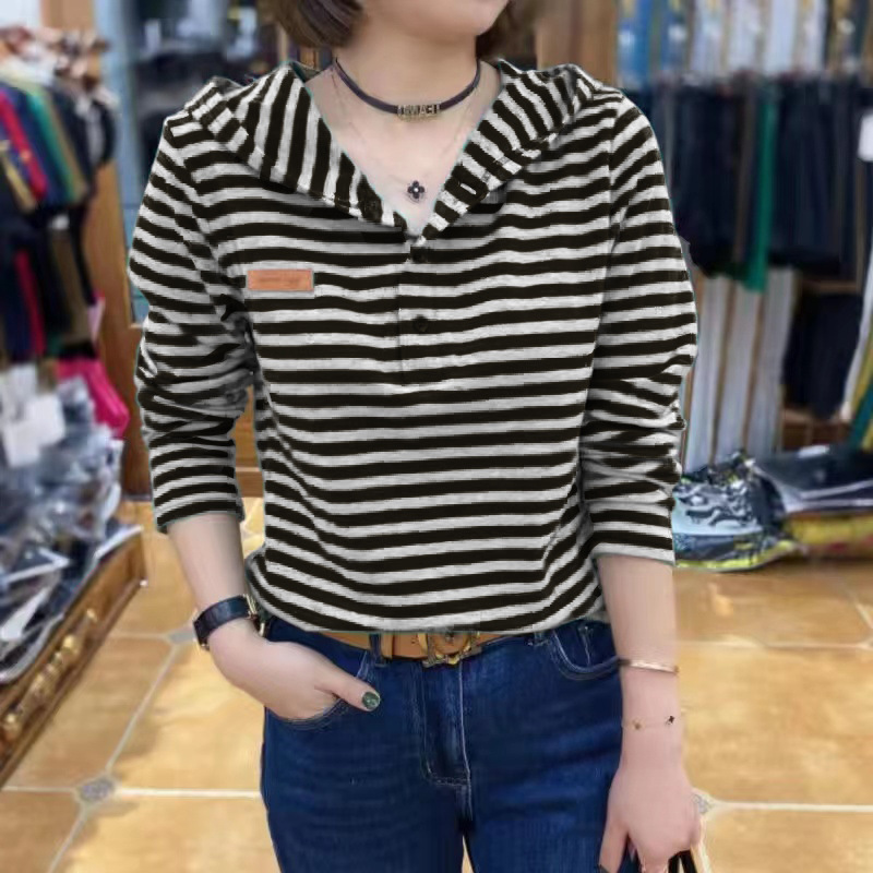 Главная страница > Весна и Осень тонкая свободная полосатая футболка с капюшоном толстовка с дном
