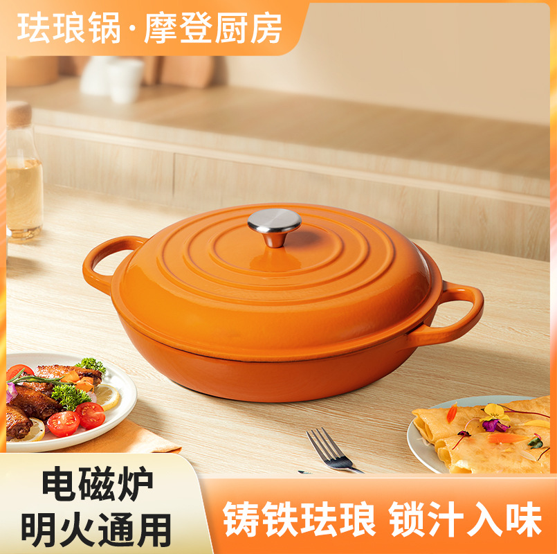 Главная страница > Чугунная эмалированная кастрюля с двумя ручками для морепродуктов, суповая кастрюля, казан, глиняная кастрюля для супа