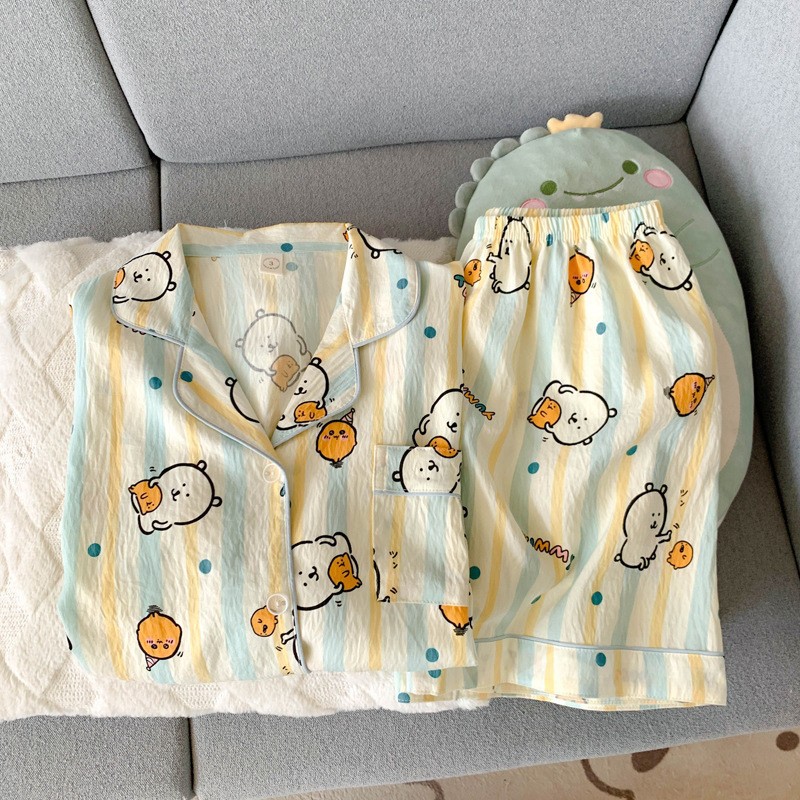 Главная страница > Трансграничные облака хлопчатобумажные пижамы женские летние короткие рукава новые шорты тонкие летние милые кардиганы для домашней одежды оптом