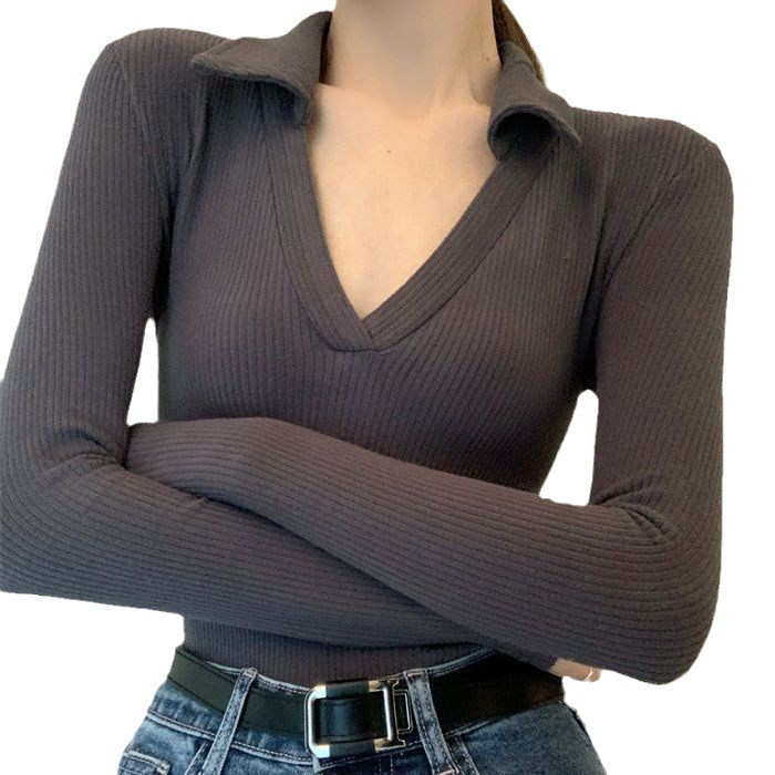 Главная страница > Женская футболка с длинными рукавами, осенняя Новинка, американский стиль чистого желания, горячая девушка, тонкий сексуальный топ с воротником POLO, модная нижняя рубашка для девочек