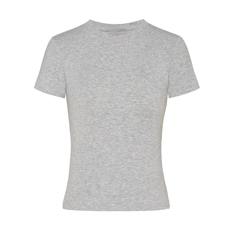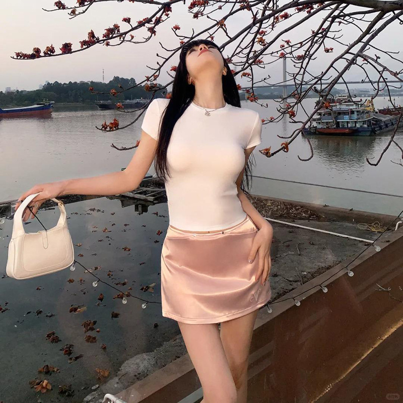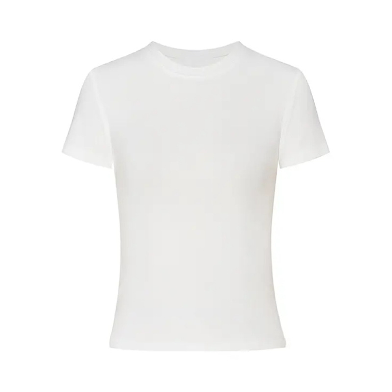 Главная страница > Футболка с положительным плечом белая с короткими рукавами женская весенняя и осенняя эластичная стройная девушка короткая нижняя рубашка с круглым вырезом