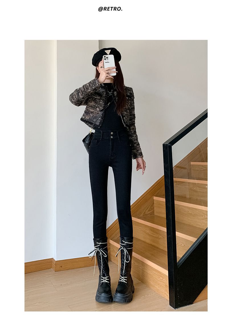 Главная страница > Джинсы на флисовой подкладке для женщин, эластичные узкие брюки для женщин, осенние брюки-карандаш для миниатюрных женщин, утягивающие узкие брюки с высокой талией для женщин, осенние.