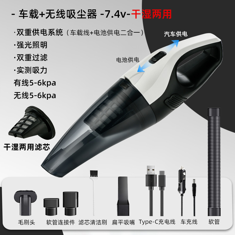 Главная страница > Мощный портативный беспроводной автомобильный пылесос для сухой и влажной уборки с двойной системой