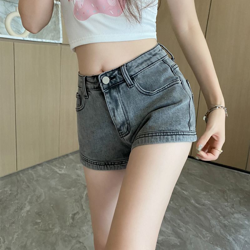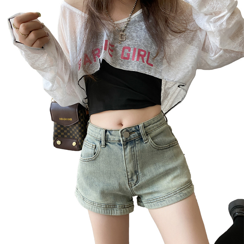Главная страница > Джинсы с высокой талией в Корейском стиле, женская летняя одежда, стрейч-шорты в стиле ретро, прямые широкие брюки для девочек, стройнящие
