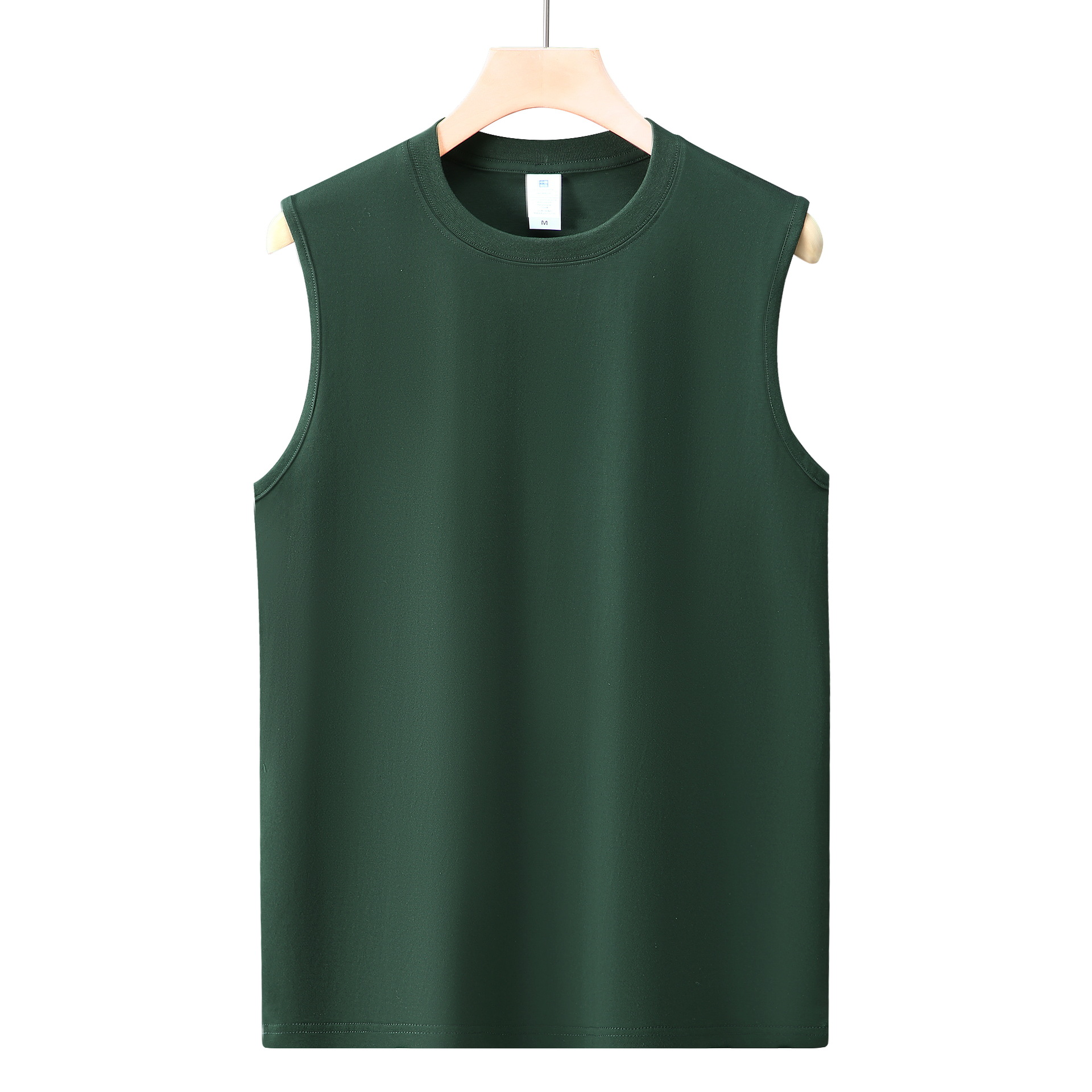 Сплошной цвет, оптовая продажа, 220 г, футболка без рукавов, жилет, фитнес, спорт, мужчины и женщины носят внутри и снаружи, универсальный белый жилет из чистого хлопка