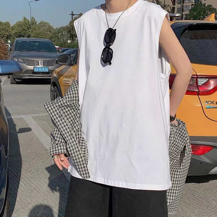 Главная страница > Сплошной цвет, оптовая продажа, 220 г, футболка без рукавов, жилет, фитнес, спорт, мужчины и женщины носят внутри и снаружи, универсальный белый жилет из чистого хлопка