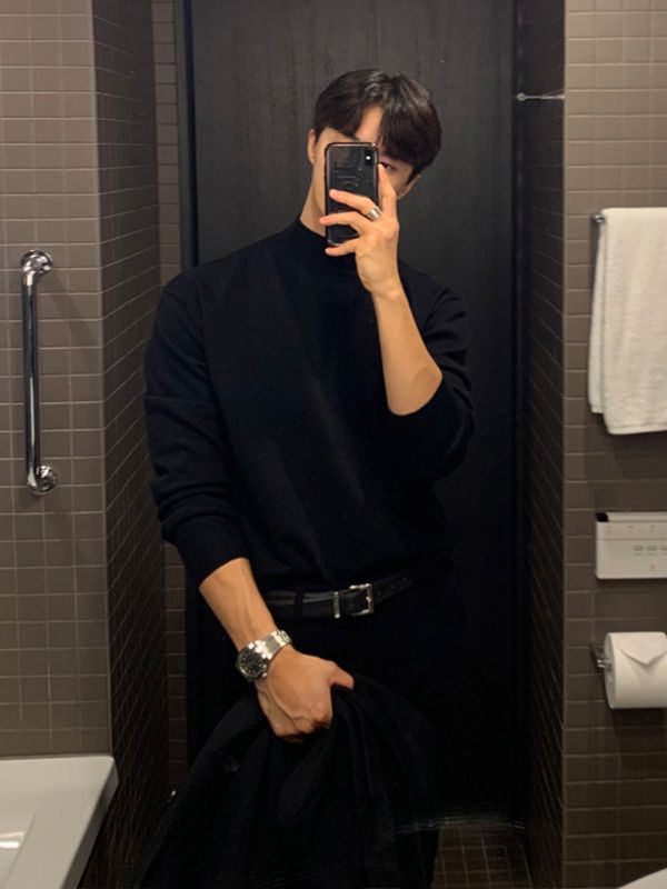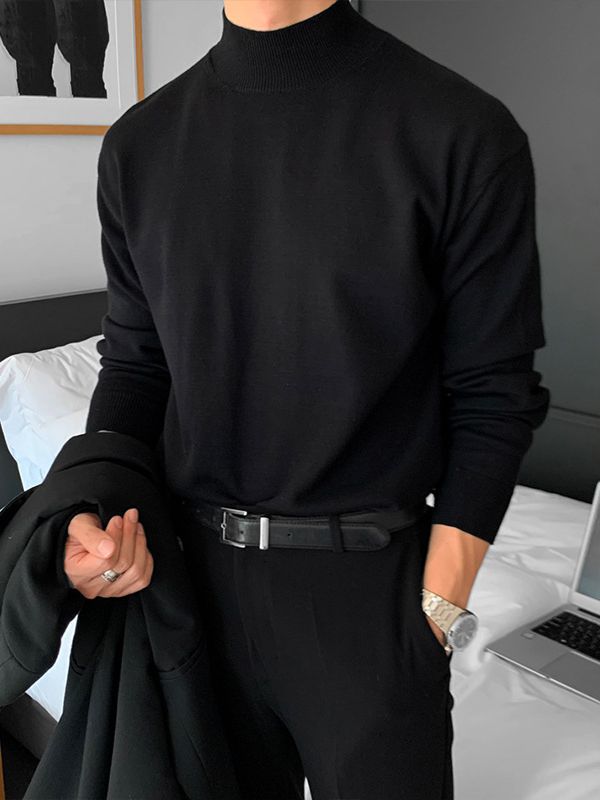 Главная страница > Черный зимний свитер с высоким воротом, Мужская модная однотонная Базовая вязаная рубашка в гонконгском стиле в Корейском стиле, Повседневная универсальная рубашка