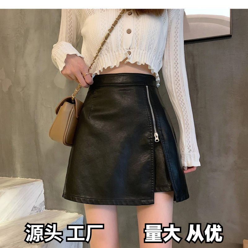 Главная страница > Маленькая кожаная юбка Юбка 2023 Тонкая модная юбка с высокой талией брюки женские молнии весна и осень PU кожаная юбка новая