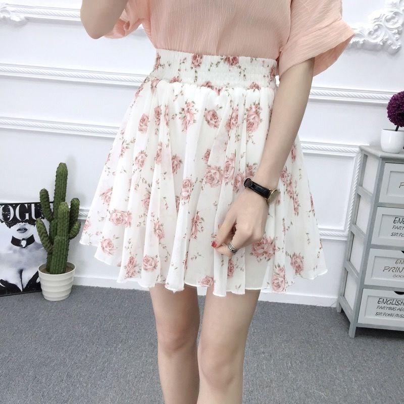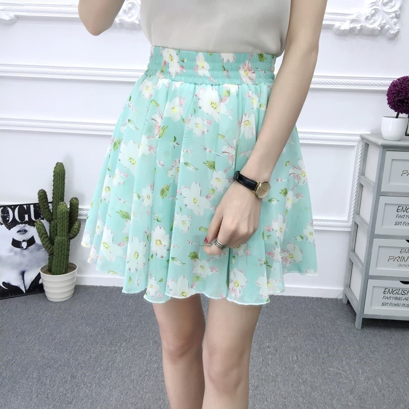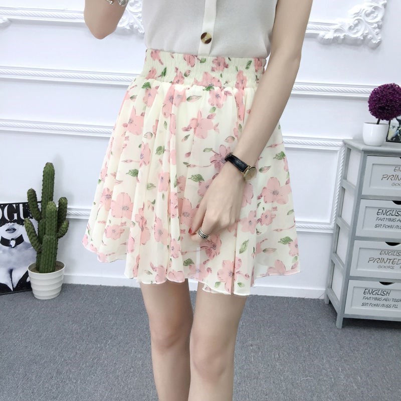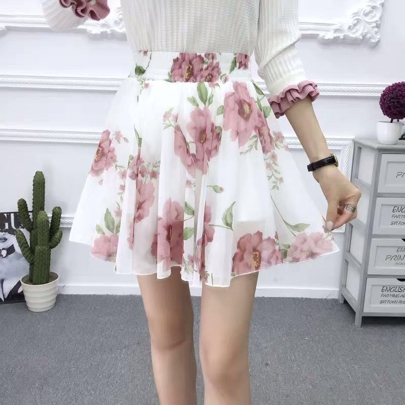 Главная страница > Лето 2025 г., шифоновая маленькая свежая юбка в корейском стиле, брюки-кюлоты с цветочным принтом, эластичные узкие брюки с высокой талией и высокой талией