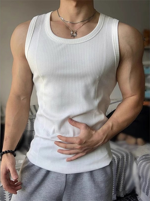 Главная страница > Белый толстый жилет с резьбой, мужской летний облегающий жилет без рукавов, американский фитнес-свитшот