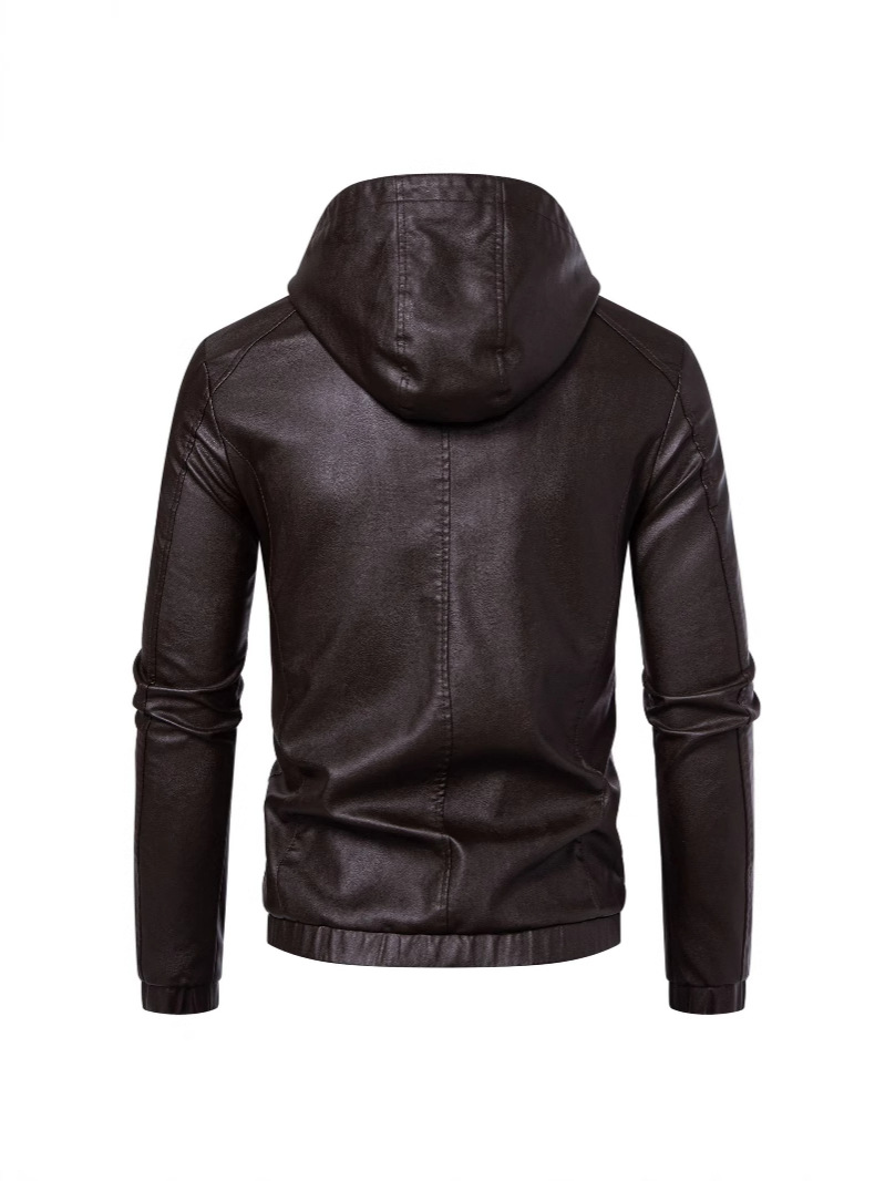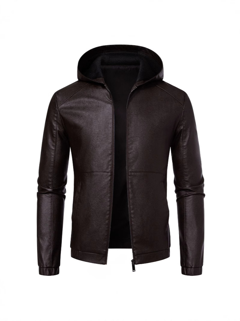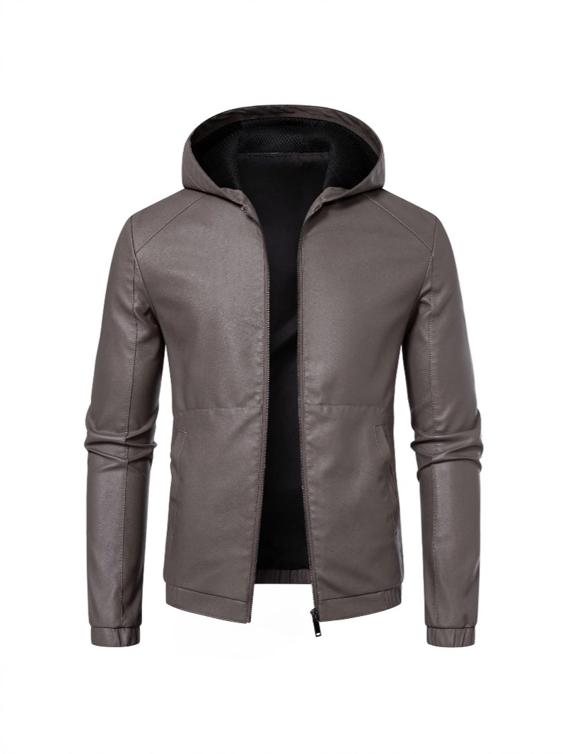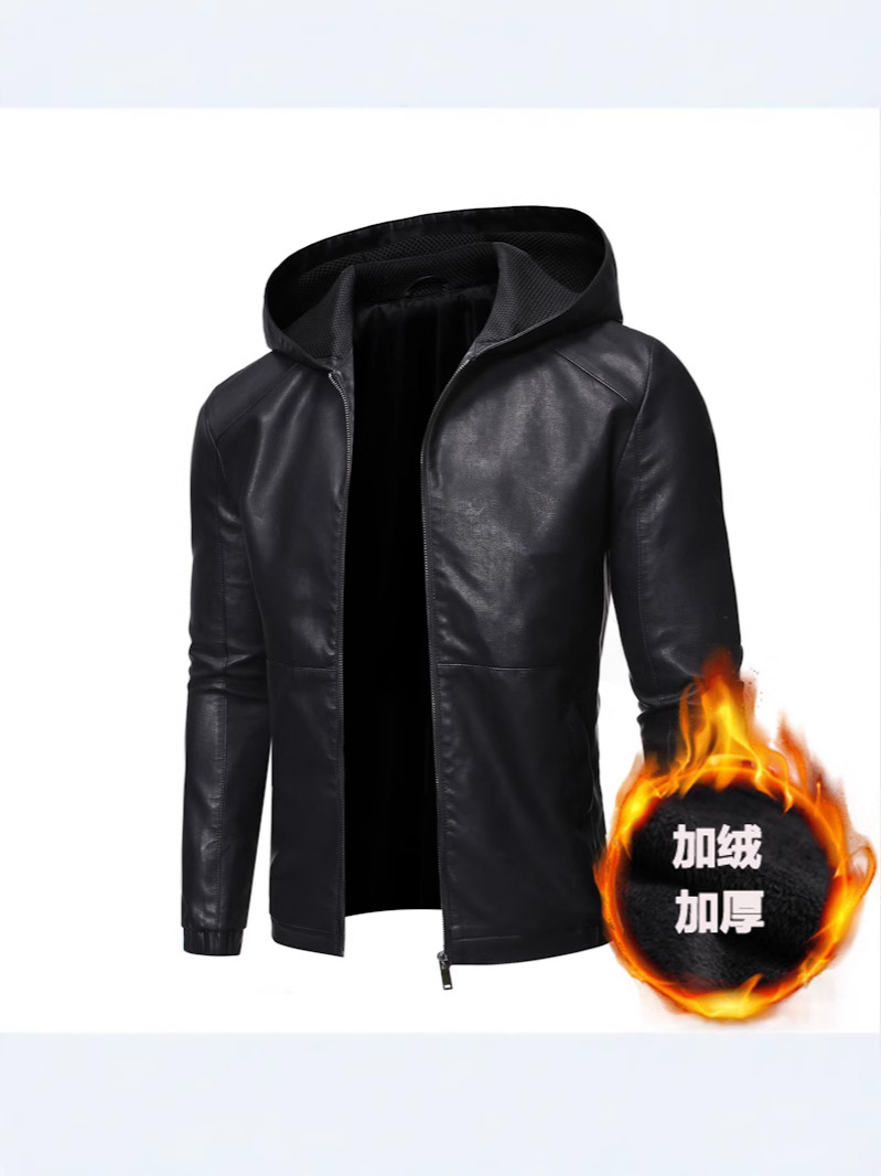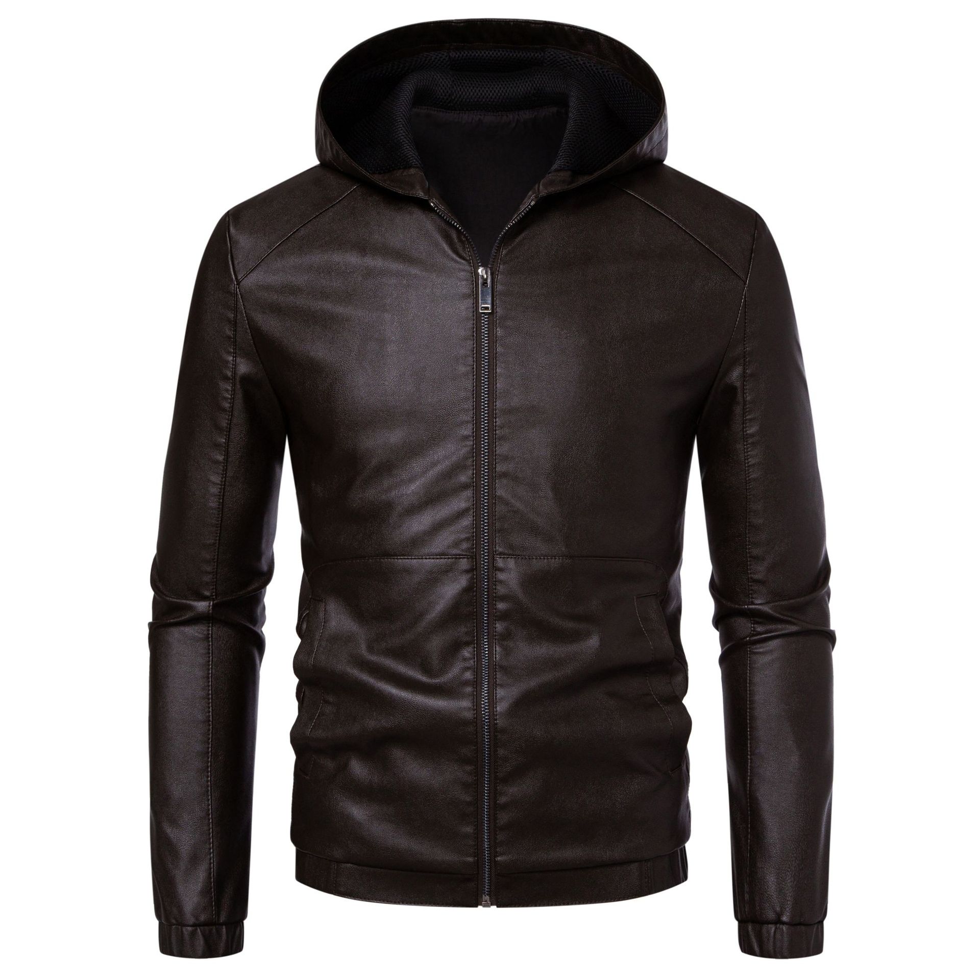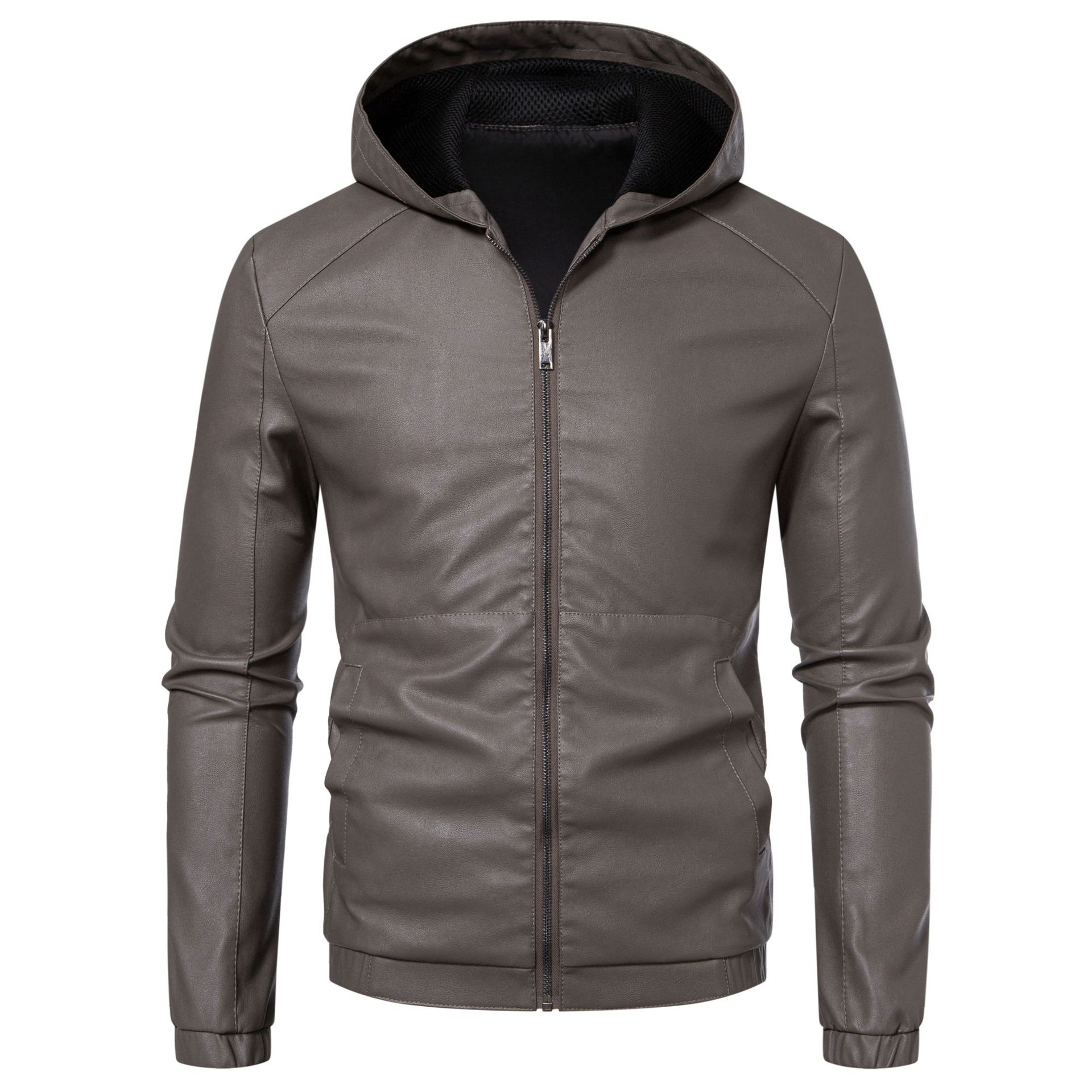 Кожаная одежда мужская осенняя и зимняя новая стройная корейская версия красивого автомобиля с капюшоном