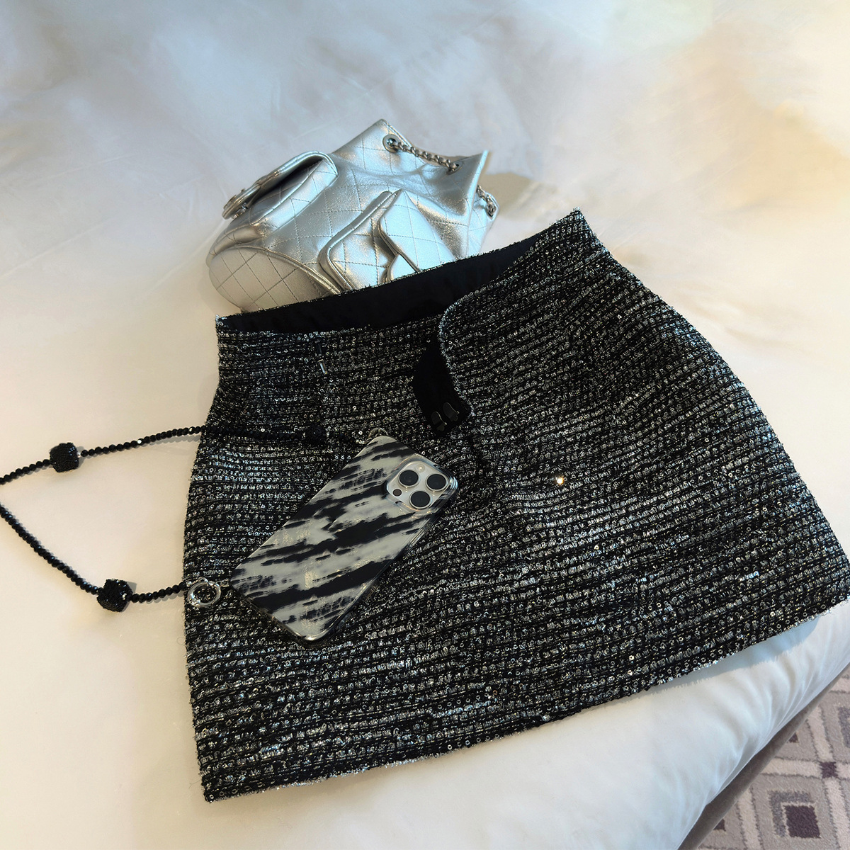 Новая осенне-зимняя юбка-шорты Nanyou с высокой талией, облегающая, А-силуэт, с тяжелой вышивкой, мягкими пайетками и блестящим эффектом, для женщин