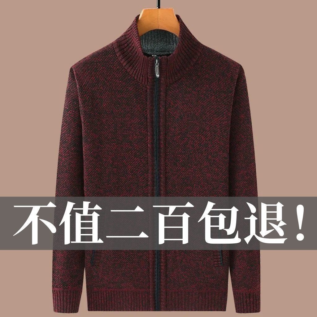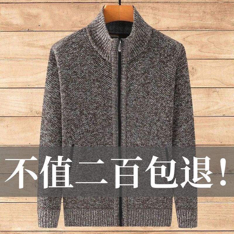 Главная страница > Утечка и очистка ~ Вязаный кардиган на молнии для мужчин осенний и зимний средний и пожилой свитер папа утолщение пальто